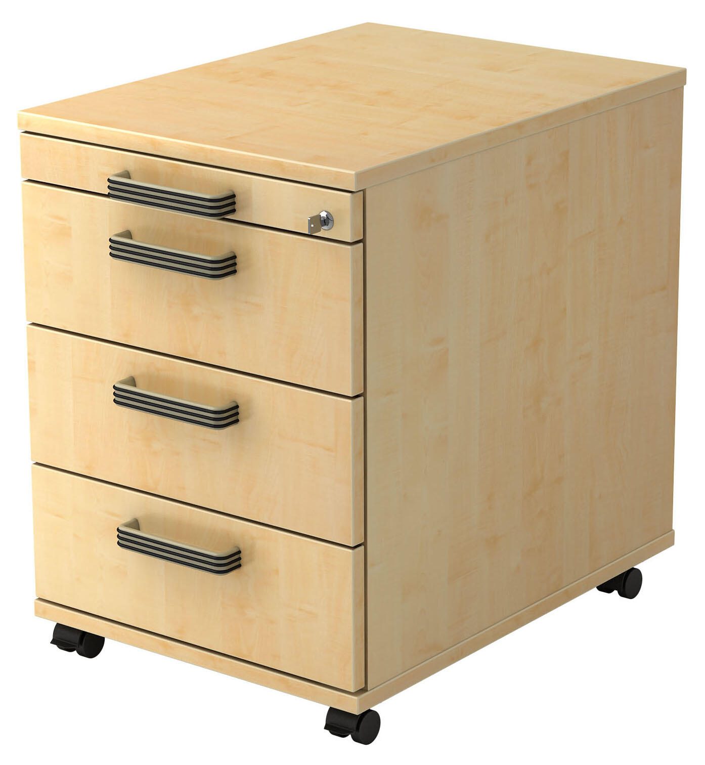 Der HAMMERBACHER Rollcontainer VAC30/3/3/SG in elegantem Ahorn-Design ist die perfekte Lösung für dein Büro oder Arbeitszimmer, um Ordnung und Stil zu vereinen. Mit seinen kompakten Maßen von 42,8 x 58,0 x 59,0 cm passt dieser Rollcontainer ideal unter jeden Schreibtisch und bietet gleichzeitig ausreichend Stauraum für deine Utensilien. Die Ausführung mit Selbsteinzug und Soft-Stopp sorgt dafür, dass die Schubladen sanft und leise schließen, was nicht nur die Langlebigkeit des Möbelstücks erhöht, sondern auch eine angenehme Arbeitsatmosphäre schafft. Der Rollcontainer verfügt über drei geräumige Schubladen, die dir helfen, deine Unterlagen und Büromaterialien übersichtlich zu organisieren. Die Verwendung von hochwertiger Spanplatte garantiert Stabilität und eine ansprechende Optik, während der Bügelgriff aus Kunststoff eine komfortable Handhabung ermöglicht. Die ansprechende Farbgebung in Ahorn verleiht deinem Raum eine warme und einladende Atmosphäre. Dank der robusten Bauweise und der durchdachten Funktionalität ist der HAMMERBACHER Rollcontainer VAC30/3/3/SG nicht nur ein praktisches Möbelstück, sondern auch ein stilvolles Element deiner Einrichtung. Die Solid AC30 Serie steht für Qualität und Design, und dieser Rollcontainer ist ein herausragendes Beispiel dafür. Ob im Homeoffice oder im professionellen Arbeitsumfeld, der HAMMERBACHER Rollcontainer bietet dir die Flexibilität, die du benötigst, um deine Arbeitsumgebung optimal zu gestalten. Mit diesem Rollcontainer hast du immer alles griffbereit und kannst dich ganz auf deine Aufgaben konzentrieren.Technische Daten