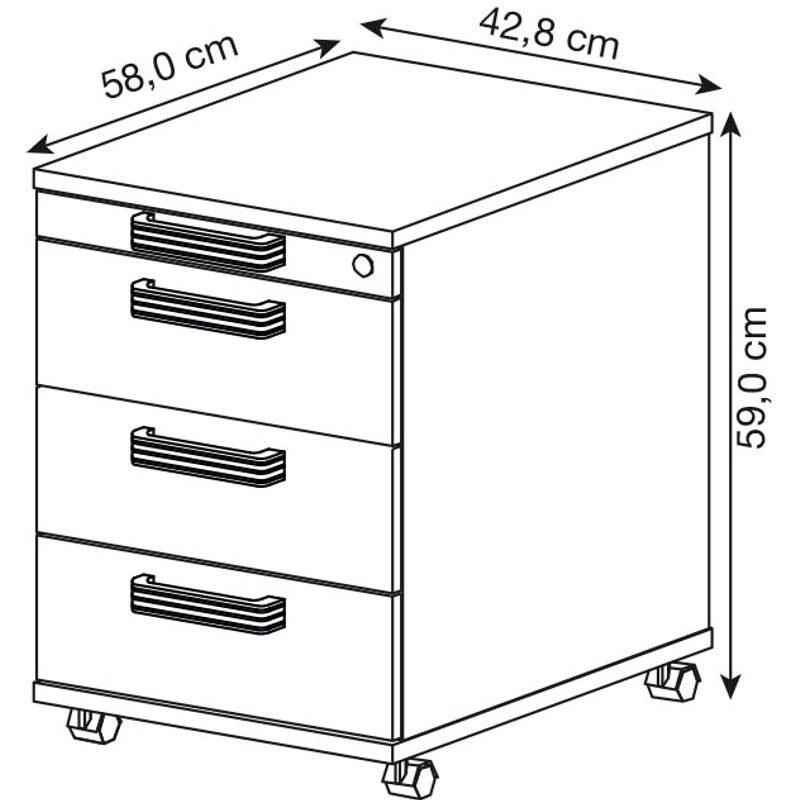 Der HAMMERBACHER Rollcontainer VAC30/5/5/SG in einem eleganten lichtgrau ist die perfekte Lösung für dein Büro oder Home-Office. Mit seinen kompakten Maßen von 42,8 x 58,0 x 59,0 cm passt er ideal unter jeden Schreibtisch und bietet dennoch ausreichend Stauraum für deine Unterlagen und Büromaterialien. Dieser Rollcontainer zeichnet sich durch eine hochwertige Verarbeitung aus Spanplatte aus, die nicht nur robust, sondern auch pflegeleicht ist. Die Schubladen sind mit einem praktischen Selbsteinzug und Soft-Stopp ausgestattet, was ein sanftes und leises Schließen ermöglicht. So kannst du deine Dokumente sicher und ordentlich verstauen, ohne dass es zu störenden Geräuschen kommt. Die drei Fächer bieten viel Platz für alles, was du im Arbeitsalltag benötigst, während der Bügelgriff aus Kunststoff eine bequeme Handhabung gewährleistet. Die schlichte und moderne Farbgestaltung in lichtgrau fügt sich harmonisch in jede Büroumgebung ein und sorgt für eine angenehme Atmosphäre. Der HAMMERBACHER Rollcontainer gehört zur Serienbezeichnung Solid AC30 und ist eine ideale Ergänzung für dein Arbeitsumfeld. Er überzeugt nicht nur durch seine Funktionalität, sondern auch durch sein ansprechendes Design, das sowohl Stil als auch Praktikabilität vereint. Somit ist der Rollcontainer nicht nur ein praktisches Möbelstück, sondern auch ein ästhetisches Element in deinem Büro.Technische Daten