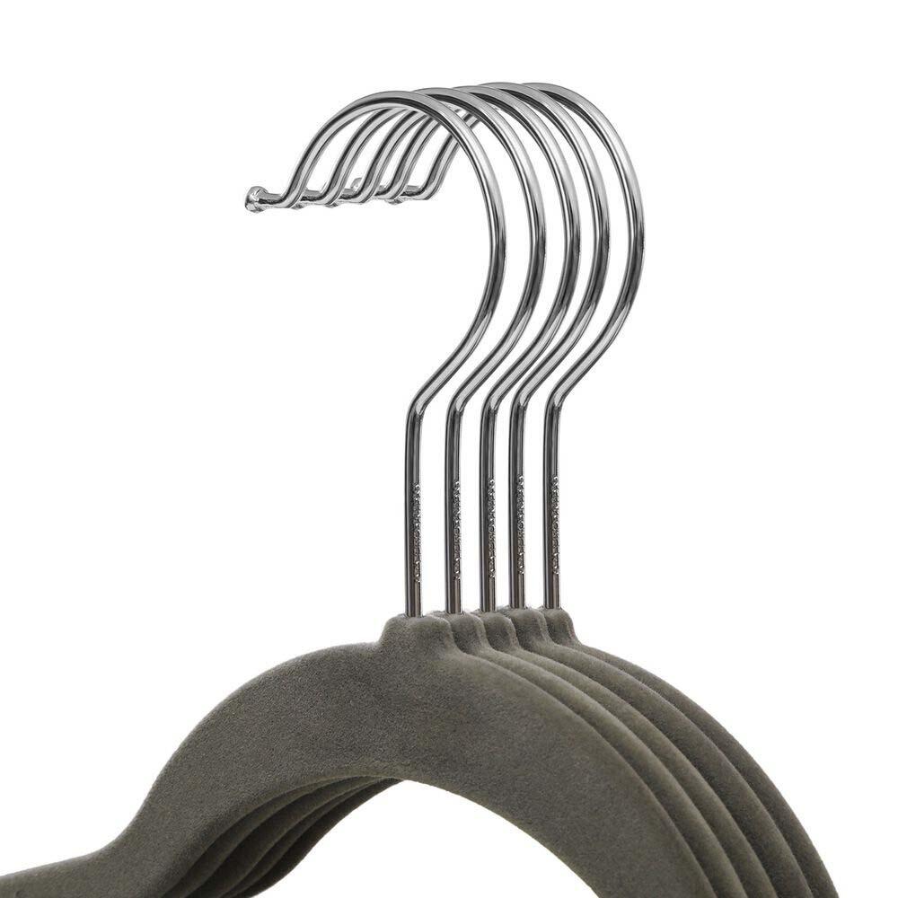 Das dezente graue Farbschema fügt sich harmonisch in jeden Kleiderschrank ein und sorgt für eine aufgeräumte Optik. In einer Packung sind 20 Kleiderbügel enthalten, die Ihnen ausreichend Kapazität bieten, um Ihre Garderobe übersichtlich zu organisieren. Durch das schlanke Profil nehmen die Bügel wenig Platz ein, wodurch Sie den verfügbaren Stauraum effizient nutzen können.