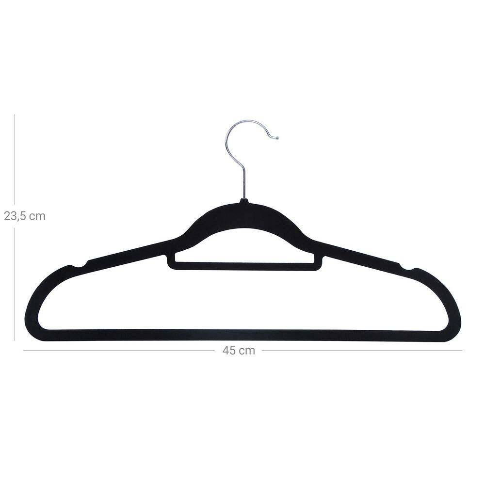 Das Set umfasst 20 Kleiderbügel, die sich durch ihr schlichtes und zeitloses Design auszeichnen. Die schwarze Farbgebung verleiht Ihrem Kleiderschrank eine moderne und einheitliche Optik, die sich mühelos mit unterschiedlichen Einrichtungsstilen kombinieren lässt. Dank des leichten Materials lassen sich die Bügel einfach handhaben und tragen, ohne dabei an Stabilität einzubüßen.
