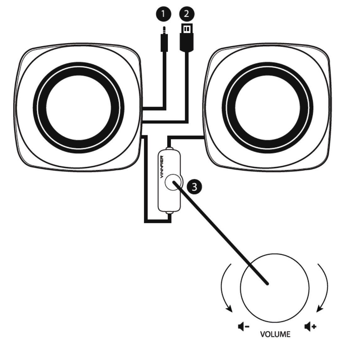 - Eigenschaften: kabelgebunden, Lautsprecherregler