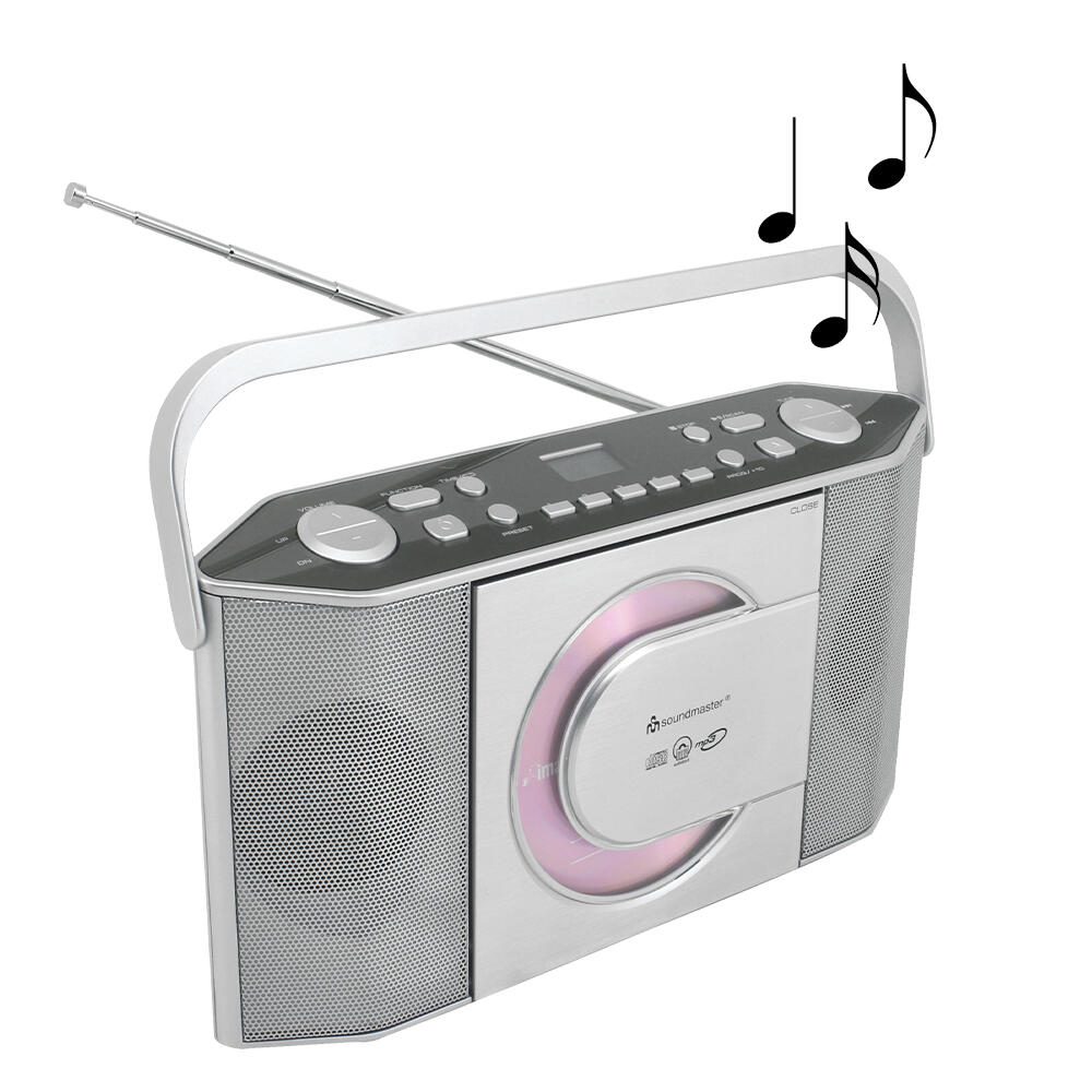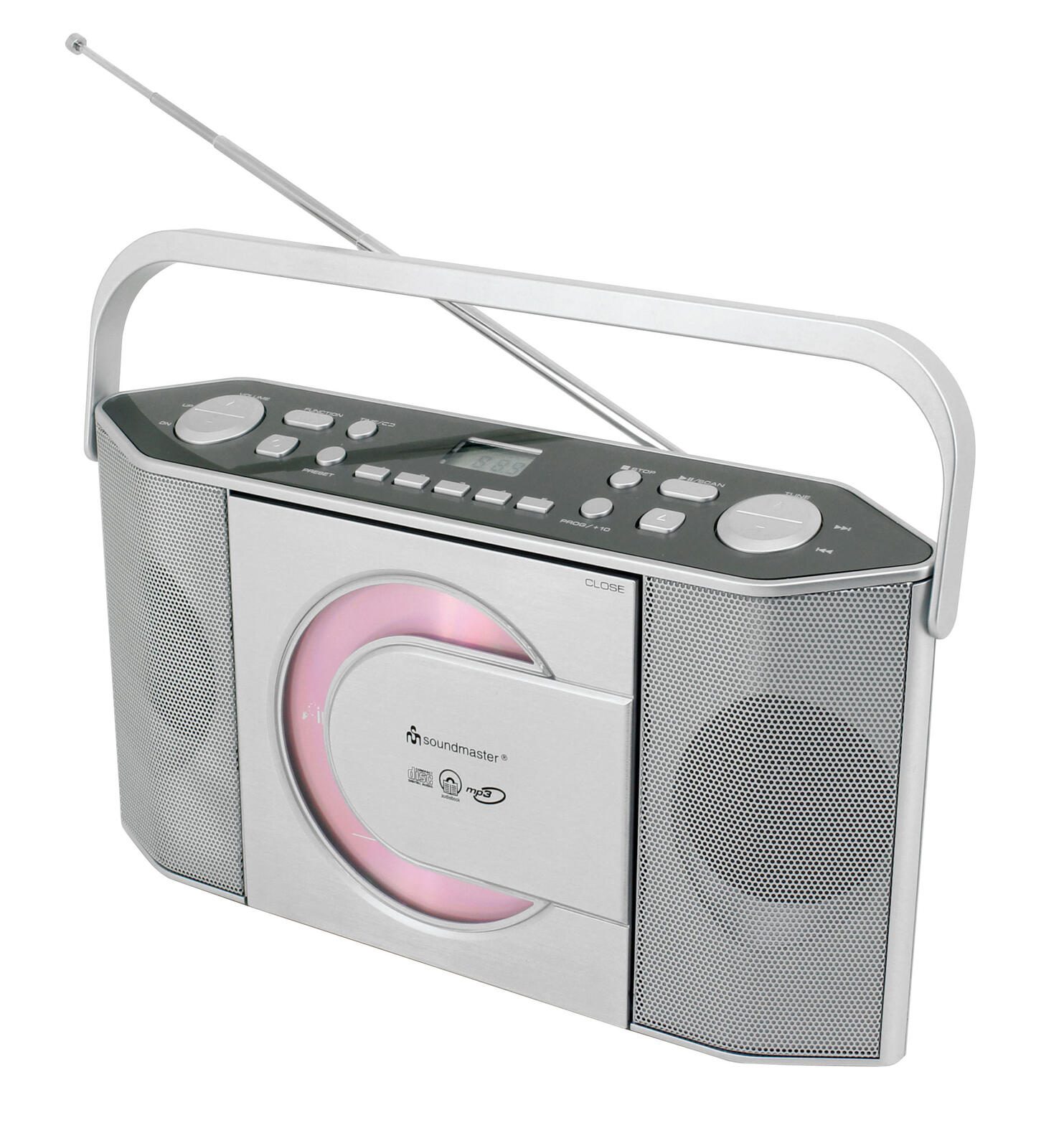 Der soundmaster RCD1755SI CD-Player ist ein tragbares Gerät in elegantem Silber, das zur Wiedergabe verschiedener CD-Formate geeignet ist. Er unterstützt die Formate CD, CD-R, CD-RW sowie CD-MP3 und bietet somit eine flexible Nutzungsmöglichkeit für unterschiedliche Audioquellen. Die kompakte Bauweise macht den Player ideal für den mobilen Einsatz.