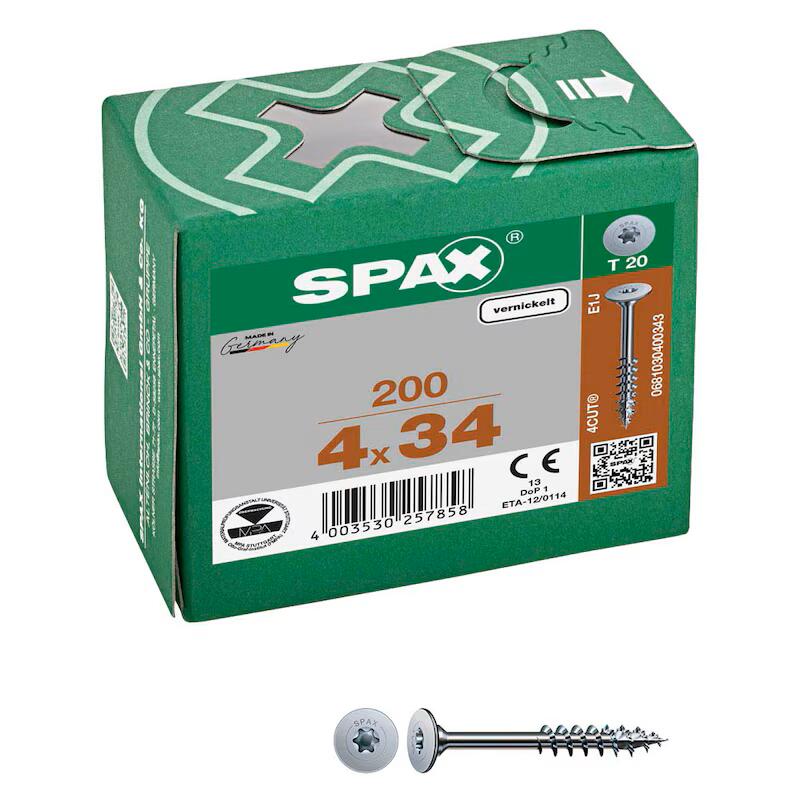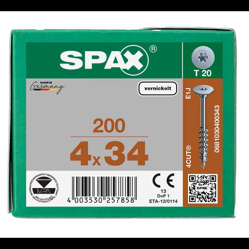 SPAX® Möbelverbindungsschrauben T20 Flachrückwandkopf 4 x 34 mm 1 Pack = 200 St.