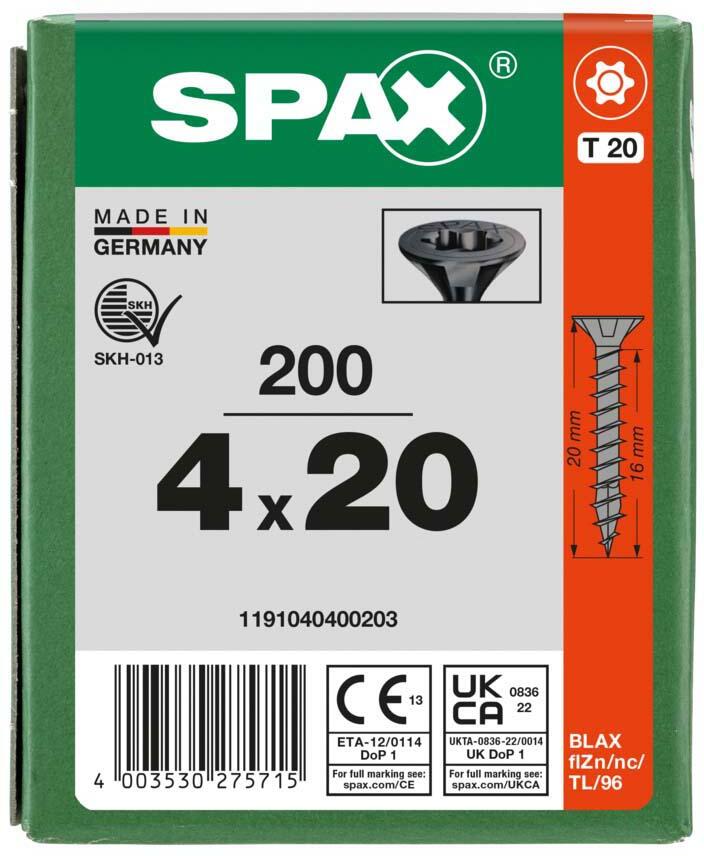 SPAX® Universalschrauben T20 4,0x20 schwarz 200 St.