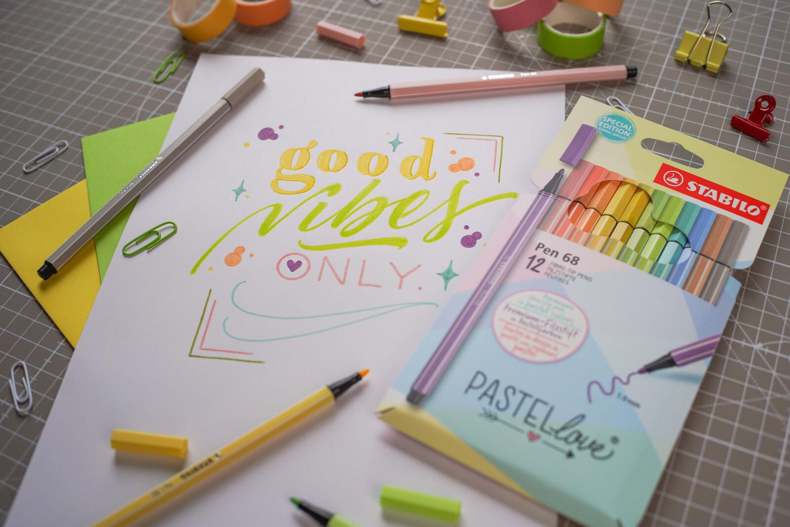 - Schreibfarbe: apricot, eukalyptus, grauviolett, hellgelb, hellorange, kobaltblau hell, limettengrün, ocker hell, pistazie, rouge, senf, warmgrau