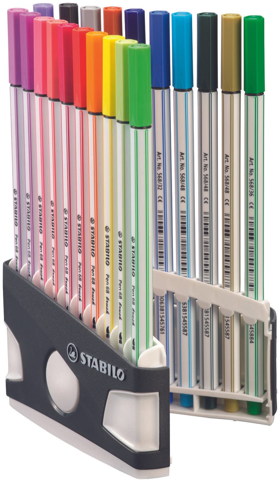 Die STABILO Filzstifte Mehrfarbig sind die perfekte Wahl für kreative Köpfe, die Wert auf Qualität und Vielseitigkeit legen. Mit einer formstabilen, elastischen Pinselspitze ermöglichen sie präzise Linien und sanfte Farbverläufe, die deiner Kreativität freien Lauf lassen. Die Stifte sind in einem praktischen Karton-Etui verpackt, das nicht nur ansprechend aussieht, sondern auch für Ordnung sorgt. Mit 20 verschiedenen Farben bietet dieses Set eine beeindruckende Farbpalette, die sich ideal für Zeichnungen, Malereien oder auch für das Ausmalen von Mandalas eignet. Die wischfesten Farben garantieren, dass deine Kunstwerke lange strahlend und lebendig bleiben. Dank der Schutzklappe sind die Stifte optimal geschützt, sodass du sie überallhin mitnehmen kannst, ohne Angst haben zu müssen, dass sie austrocknen. Die Sechskant-Griffart sorgt für einen angenehmen Halt und ermöglicht dir stundenlangen Malspaß ohne Ermüdung. Obwohl keine spezifische Strichstärke angegeben ist, kannst du die Stifte dank ihrer flexiblen Pinselspitze vielseitig einsetzen, egal ob für feine Details oder breite Farbflächen. Die STABILO Filzstifte sind nicht nur für Kinder geeignet, sondern auch für Erwachsene, die ihre kreative Seite entdecken möchten. Lass deiner Fantasie freien Lauf und erlebe, wie diese hochwertigen Filzstifte deine Kunstwerke zum Leben erwecken. Mit den STABILO Filzstiften Mehrfarbig wird jede Zeichnung zu einem einzigartigen Erlebnis.Technische Daten