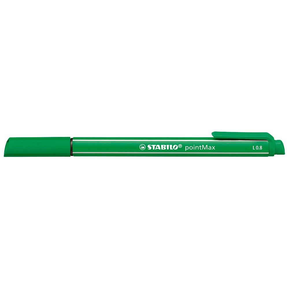 Der STABILO pointMax Filzstift in smaragdgrün ist der ideale Begleiter für kreative Köpfe und bietet dir ein außergewöhnliches Schreiberlebnis. Mit seiner wasserlöslichen und auswaschbaren Tinte auf Wasserbasis ist er nicht nur umweltfreundlich, sondern auch perfekt für Kinder und Kunstliebhaber geeignet. Die geruchsarme Tinte sorgt dafür, dass du beim Zeichnen und Schreiben keine unangenehmen Gerüche wahrnimmst, was das Arbeiten noch angenehmer macht. Die Rundspitze des Filzstifts hat eine Strichstärke von 0,8 mm und ermöglicht dir langanhaltenden Malspaß. Egal, ob du feine Linien oder kräftige Striche setzen möchtest, dieser Filzstift passt sich deinen Bedürfnissen an. Zudem ist der pointMax mit einer praktischen Schutzklappe ausgestattet, die dafür sorgt, dass die Spitze immer gut geschützt ist und die Tinte nicht austrocknet. Selbst nach längerem Offenliegen funktioniert der Stift einwandfrei, sodass du dir keine Sorgen über unbrauchbare Schreibgeräte machen musst. Der sechskantige Griff des STABILO pointMax sorgt für ein ausgezeichnetes Schreibgefühl und ermöglicht dir eine angenehme Handhabung, auch bei längeren Schreib- oder Zeichensessions. Der integrierte Clip bietet dir die Möglichkeit, den Stift einfach an deiner Tasche oder deinem Notizbuch zu befestigen, sodass er immer griffbereit ist. Mit dem STABILO pointMax Filzstift in grün bringst du Farbe in deine Projekte und kannst deiner Kreativität freien Lauf lassen. Die Kombination aus hochwertiger Verarbeitung, durchdachtem Design und vielseitigen Anwendungsmöglichkeiten macht diesen Filzstift zu einem unverzichtbaren Werkzeug für jeden, der gerne schreibt oder zeichnet.Technische Daten