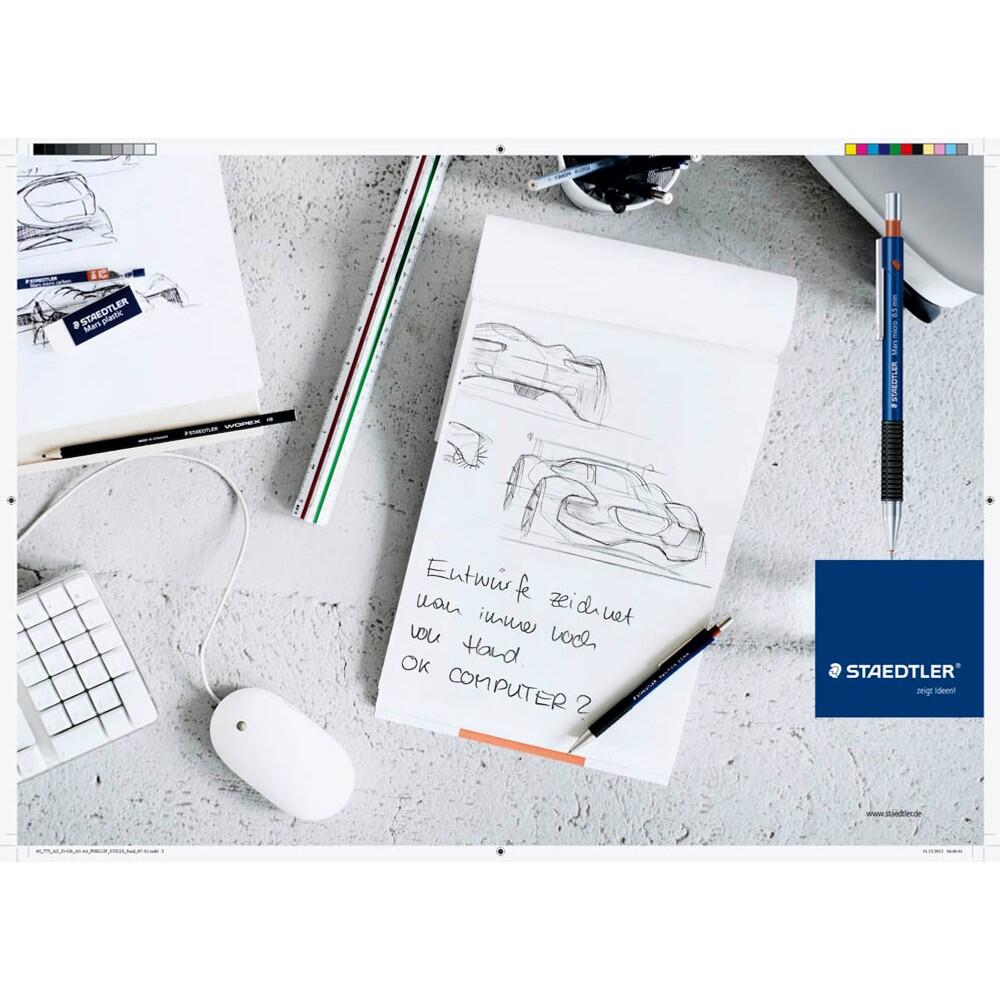 Der STAEDTLER MARSMICRO Druckbleistift HB 0,5 mm in Blau ist das ideale Werkzeug für kreative Köpfe und präzise Zeichner. Mit seiner nachfüllbaren Mine und dem integrierten Radierer bietet er nicht nur Funktionalität, sondern auch eine nachhaltige Nutzung. Der Metallclip sorgt dafür, dass du ihn überallhin mitnehmen kannst, ohne ihn zu verlieren. Die außergewöhnliche Präzision dieses Druckbleistifts macht ihn zu einem unverzichtbaren Begleiter für jeden, der gerne freihand zeichnet oder professionelle Zeichnungen mit Lineal und Schablone anfertigt. Die bruchsichere Mine sorgt dafür, dass du dich auf die Qualität und Langlebigkeit des Produkts verlassen kannst. Der Druckknopfmechanismus ermöglicht ein einfaches und schnelles Nachfüllen, sodass du jederzeit bereit bist, deiner Kreativität freien Lauf zu lassen. Mit einem gummierten Griff und speziellen Rillen bietet der STAEDTLER MARSMICRO Druckbleistift einen hohen Komfort beim Zeichnen. Er liegt angenehm in der Hand und ist besonders leicht, was lange Zeichensitzungen erleichtert. Egal, ob du ein professioneller Künstler oder ein begeisterter Hobbyzeichner bist, dieser Druckbleistift wird deine Erwartungen übertreffen. Die 0,5 mm Strichstärke ermöglicht feine und präzise Linien, die für detaillierte Arbeiten unerlässlich sind. Mit dem STAEDTLER MARSMICRO Druckbleistift HB 0,5 mm in Blau erhältst du ein hochwertiges Zeichenwerkzeug, das sowohl für technische Zeichnungen als auch für kreative Entwürfe perfekt geeignet ist. Lass deiner Fantasie freien Lauf und entdecke die Vielseitigkeit dieses außergewöhnlichen Druckbleistifts.Technische Daten
