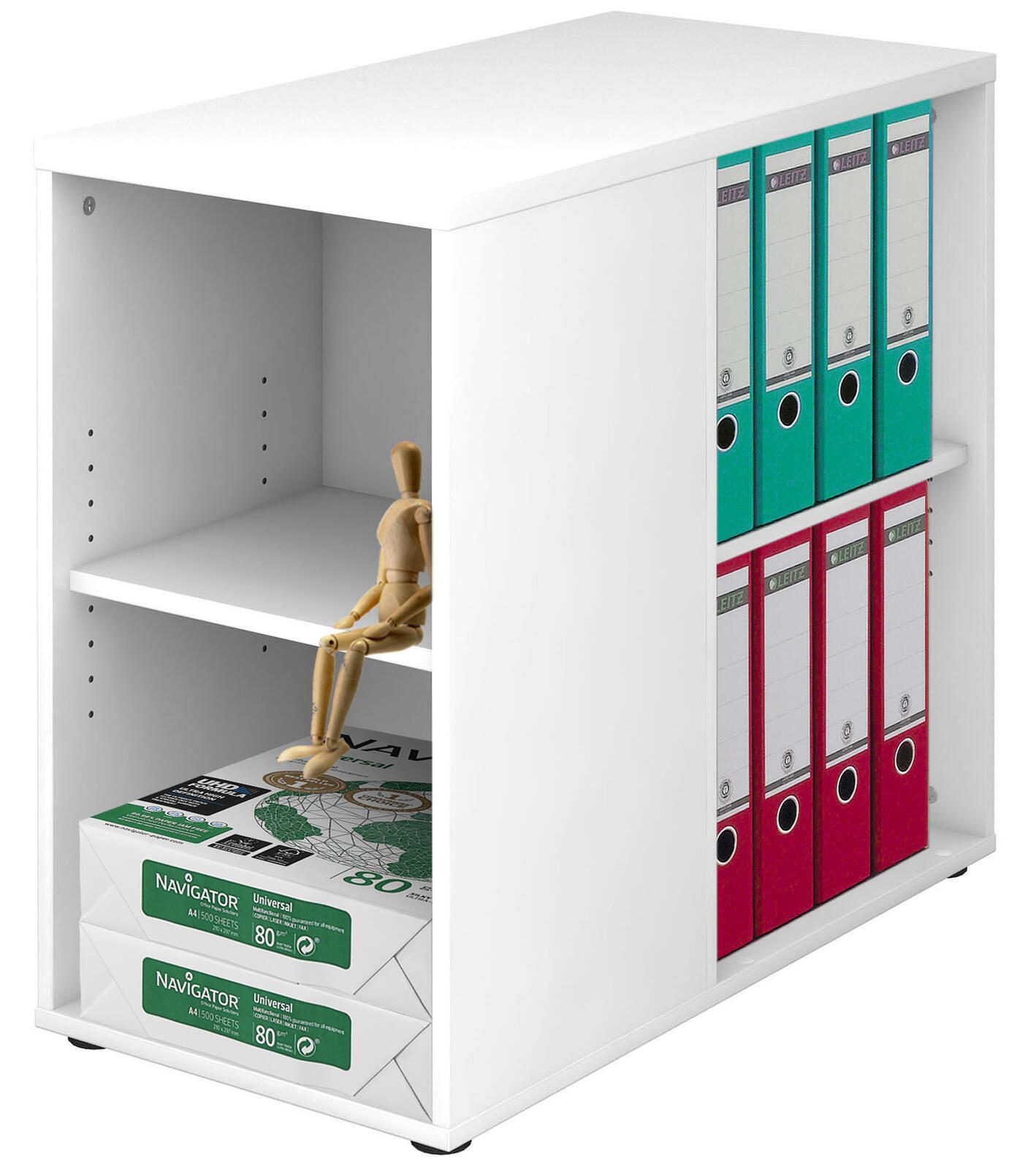 Der HAMMERBACHER Prokura Standcontainer in elegantem Weiß ist die ideale Lösung für dein Büro oder Homeoffice. Gefertigt aus hochwertiger Spanplatte, bietet dieser Standcontainer nicht nur eine ansprechende Optik, sondern auch eine hohe Stabilität und Langlebigkeit. Mit seinen kompakten Maßen von 40,0 x 80,0 x 72,0 cm passt er perfekt in jede Ecke und sorgt für eine aufgeräumte Arbeitsumgebung. Die schlichte Farbgestaltung in Weiß fügt sich harmonisch in verschiedene Einrichtungsstile ein und verleiht deinem Raum eine moderne Note. Der Standcontainer kommt ohne Griffausführung, was ihm ein minimalistisches und zeitgemäßes Design verleiht. Dies ermöglicht eine einfache Handhabung und sorgt gleichzeitig für eine klare Linienführung, die das Gesamtbild abrundet. Ob als Ablagefläche für Dokumente, Büromaterialien oder persönliche Gegenstände, der HAMMERBACHER Prokura Standcontainer bietet dir vielseitige Nutzungsmöglichkeiten. Mit seiner durchdachten Konstruktion ist er nicht nur praktisch, sondern auch ein stilvolles Möbelstück, das deinen Arbeitsplatz aufwertet. Die Serie 1630 von HAMMERBACHER steht für Qualität und Funktionalität. Der Standcontainer ist eine hervorragende Wahl für alle, die Wert auf ein funktionales und gleichzeitig ästhetisches Büromöbel legen. Entdecke die Vorzüge des HAMMERBACHER Prokura Standcontainers und genieße eine organisierte und inspirierende Arbeitsumgebung.Technische Daten