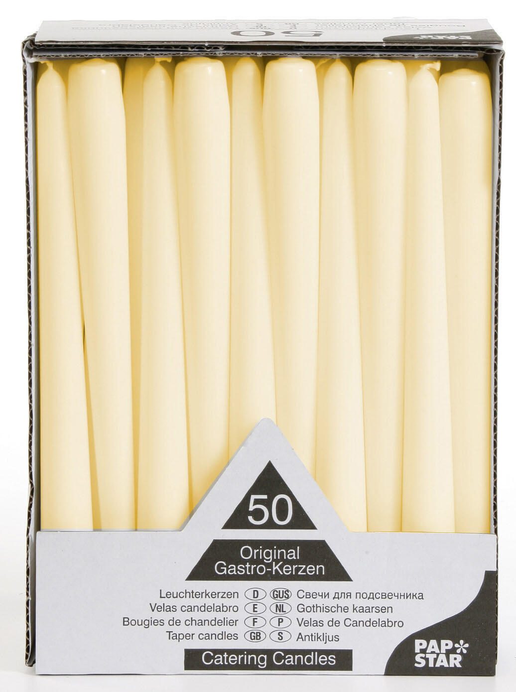 Die PAPSTAR Kerzen in der eleganten Farbe champagner sind die perfekte Wahl für besondere Anlässe und die tägliche Nutzung. Mit einer Höhe von 25 cm und einem Durchmesser von 2,2 cm bieten diese Original Gastro-Kerzen nicht nur eine beeindruckende Erscheinung, sondern auch eine lange Brenndauer, die für stimmungsvolle Beleuchtung sorgt. Hergestellt aus hochwertigem Paraffin und Palmstearin, garantieren diese Kerzen eine saubere und gleichmäßige Verbrennung. Ihr sanfter Farbton in champagner fügt sich harmonisch in jede Dekoration ein und verleiht deinem Raum eine warme, einladende Atmosphäre. Ob für festliche Anlässe, romantische Dinner oder als stilvolle Ergänzung zu deiner Inneneinrichtung – die PAPSTAR Kerzen sind vielseitig einsetzbar und setzen überall Akzente. Die praktische Verpackungseinheit von 50 Stück sorgt dafür, dass du immer ausreichend Kerzen zur Hand hast, egal ob für große Feiern oder für den persönlichen Gebrauch. Die Original Gastro-Kerzen von PAPSTAR sind speziell für den professionellen Einsatz konzipiert, überzeugen aber auch im privaten Bereich durch ihre Qualität und Ästhetik. Vertraue auf die Erfahrung von PAPSTAR, einem renommierten Hersteller, der für seine hochwertigen Produkte bekannt ist. Mit den PAPSTAR Kerzen 25 cm champagner entscheidest du dich für ein Produkt, das sowohl durch seine Funktionalität als auch durch sein ansprechendes Design besticht. Lass dich von der Qualität und dem stilvollen Erscheinungsbild dieser Kerzen begeistern und genieße die stimmungsvolle Beleuchtung in deinem Zuhause.Technische Daten