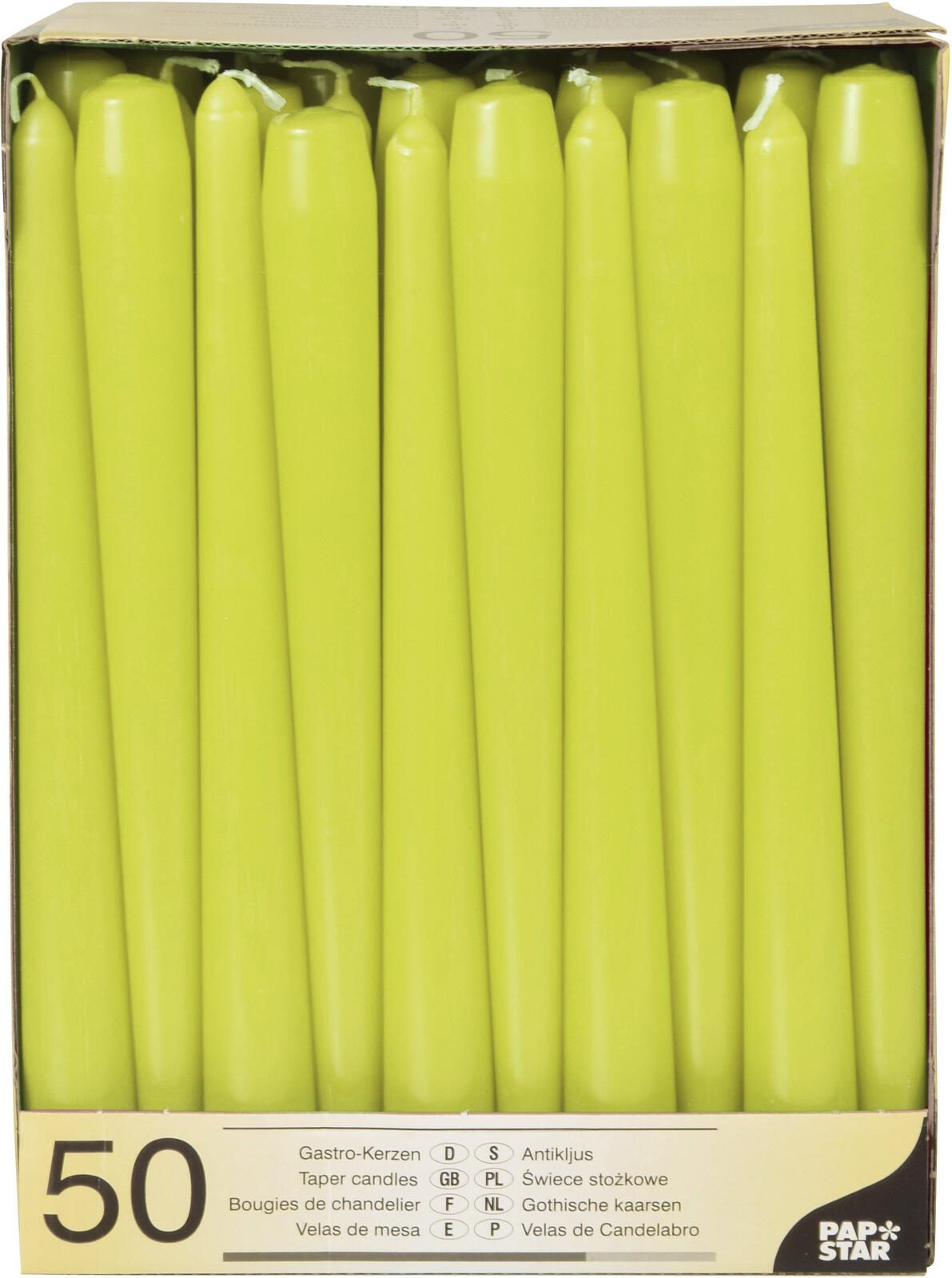 Die PAPSTAR Kerzen in limonengrün sind die perfekte Wahl für alle, die eine stilvolle Beleuchtung mit einem frischen Farbtupfer kombinieren möchten. Diese Original Gastro-Kerzen haben eine Höhe von 25 cm und einen Durchmesser von 2,2 cm, was sie ideal für verschiedene Anlässe macht, sei es für den Einsatz in der Gastronomie oder für private Feiern. Die leuchtende limonengrüne Farbe der Kerzen verleiht jedem Raum eine angenehme, lebendige Atmosphäre und sorgt für ein einladendes Ambiente. Ob auf dem Tisch bei einem festlichen Dinner, als Dekoration für eine Hochzeit oder bei einem gemütlichen Abend mit Freunden, diese Kerzen setzen stimmungsvolle Akzente und unterstreichen dein individuelles Dekorationskonzept. Jede Verpackungseinheit enthält 50 Stück der hochwertigen PAPSTAR Kerzen, hergestellt aus einer sorgfältigen Kombination von Paraffin und Palmstearin. Diese Materialien garantieren nicht nur eine gleichmäßige Brenndauer, sondern auch eine saubere und rußfreie Verbrennung, sodass du die Kerzen unbesorgt in geschlossenen Räumen verwenden kannst. Die PAPSTAR Kerzen sind nicht nur funktional, sondern auch ein echter Blickfang. Sie sind vielseitig einsetzbar und lassen sich hervorragend mit anderen Dekorationselementen kombinieren. Mit diesen Kerzen bringst du nicht nur Licht, sondern auch Farbe und Stil in deine Umgebung. Vertraue auf die Qualität von PAPSTAR und genieße die warmen, einladenden Lichtmomente, die diese Kerzen bieten.Technische Daten