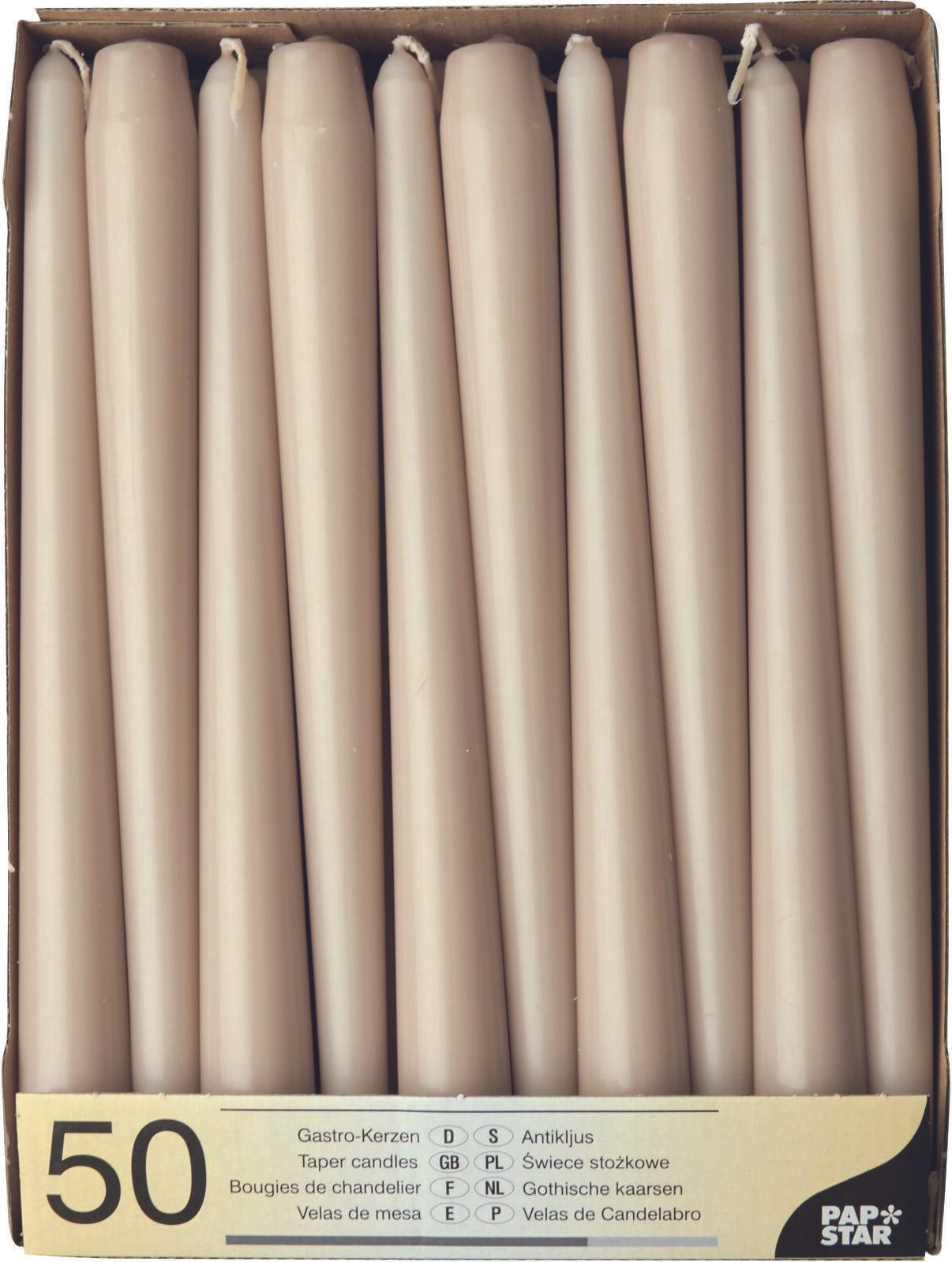 Die PAPSTAR Kerzen mit einer Höhe von 25 cm und einem Durchmesser von 2,2 cm sind die perfekten Begleiter für stimmungsvolle Anlässe. Diese Original Gastro-Kerzen in zartem Puder-Ton verleihen jedem Raum eine elegante Atmosphäre und sind ideal für festliche Tischdekorationen oder gemütliche Abende zu Hause. Mit einer Verpackungseinheit von 50 Stück bieten die PAPSTAR Kerzen nicht nur eine großartige Möglichkeit, deine Veranstaltungen stilvoll zu gestalten, sondern auch ein hervorragendes Preis-Leistungs-Verhältnis. Ob für Hochzeiten, Geburtstagsfeiern oder einfach nur zum Entspannen bei Kerzenschein, diese Kerzen sorgen für ein warmes und einladendes Licht. Hergestellt aus einer hochwertigen Mischung aus Paraffin und Palmstearin, garantieren die Kerzen eine gleichmäßige Brenndauer und eine saubere Verbrennung. Die sorgfältige Verarbeitung und die Verwendung von hochwertigen Materialien machen die PAPSTAR Kerzen zu einer zuverlässigen Wahl für jeden Anlass. Der sanfte Farbton in Puder harmoniert perfekt mit verschiedenen Dekorationsstilen und lässt sich mühelos in bestehende Arrangements integrieren. Die PAPSTAR Kerzen sind nicht nur funktional, sondern auch ein stilvolles Accessoire, das deine Räume aufwertet. Ob auf dem Esstisch, im Wohnzimmer oder als Teil einer festlichen Tischdekoration, sie setzen überall Akzente und schaffen eine angenehme Stimmung. Mit diesen Kerzen kannst du unvergessliche Momente schaffen und eine gemütliche Atmosphäre genießen.Technische Daten