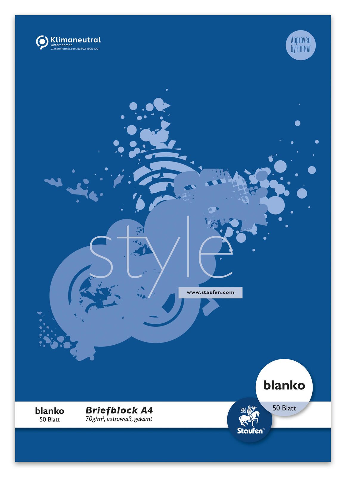 Der Staufen® Briefblock DIN A4 blanko ist die perfekte Wahl für all deine Schreibbedürfnisse. Mit 50 Blatt hochwertigem Papier bietet dieser Block ausreichend Platz für Notizen, Skizzen oder kreative Ideen. Das Papier hat ein Gewicht von 70 g/m², was es angenehm dick macht und ein Durchdrücken von Tinte oder Bleistiftstrichen minimiert. Die Ausführung der Lineatur ist blanko, was dir die Freiheit gibt, deine Gedanken ohne Einschränkungen festzuhalten. Ob du für die Schule, das Büro oder für private Zwecke schreibst, dieser Briefblock passt sich deinen individuellen Bedürfnissen an. Der Block kommt ohne Rand und ohne Lochungen, was ein sauberes und ungestörtes Schreibbild gewährleistet. Die weiße Papierfarbe sorgt für eine klare und kontrastreiche Darstellung deiner Texte und Zeichnungen. Zudem ist das Papier elementar chlorfrei gebleicht (ECF) und somit umweltfreundlicher als viele herkömmliche Alternativen. Der Staufen® Briefblock ist zudem holzfrei, was ihn zu einer nachhaltigen Wahl für umweltbewusste Nutzer macht. Die flexible Bindung ermöglicht es dir, die Blätter leicht umzublättern, ohne dass sie beschädigt werden. Egal ob du den Block zu Hause, im Büro oder unterwegs verwendest, er ist stets bereit, deine Ideen festzuhalten. Der Staufen® Briefblock DIN A4 blanko überzeugt nicht nur durch seine Funktionalität, sondern auch durch seine hohe Qualität und Umweltfreundlichkeit.Technische Daten