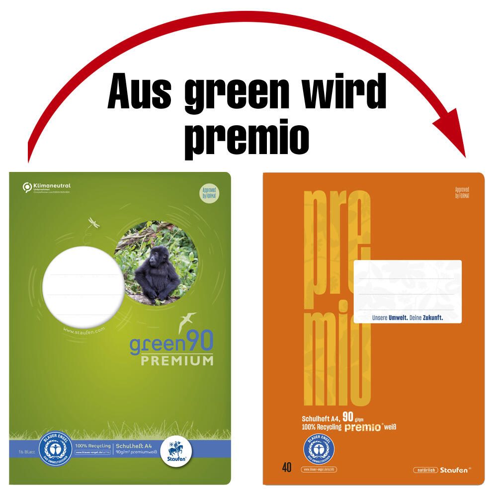 Das Staufen® Schulheft Staufen Heft Green A4 in kariertem Format bietet dir eine umweltfreundliche Lösung für deine schulischen oder beruflichen Notizen. Hergestellt aus recycling Papier und produziert in einem klimaneutralen Unternehmen, trägt dieses Heft dazu bei, die Umwelt zu schonen.