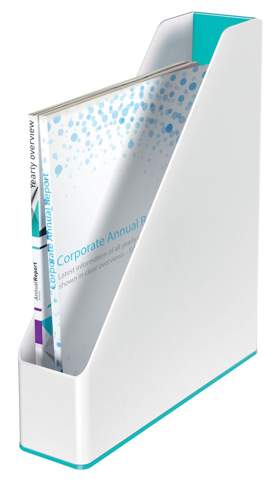 Das Design in perlweiß und eisblau verleiht deinem Arbeitsplatz eine frische und moderne Optik. Der Stehsammler von LEITZ überzeugt nicht nur durch seine Funktionalität, sondern auch durch sein ansprechendes Aussehen.
