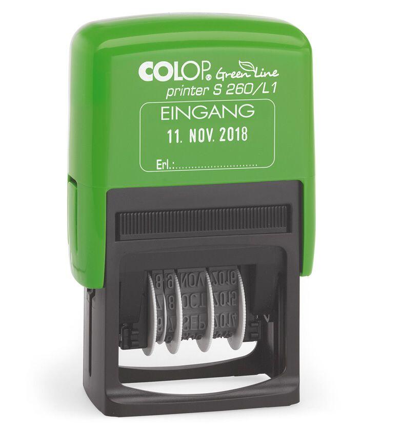 COLOP Datumstempel mit Text Stempel Printer 260/L1 Eingang grün