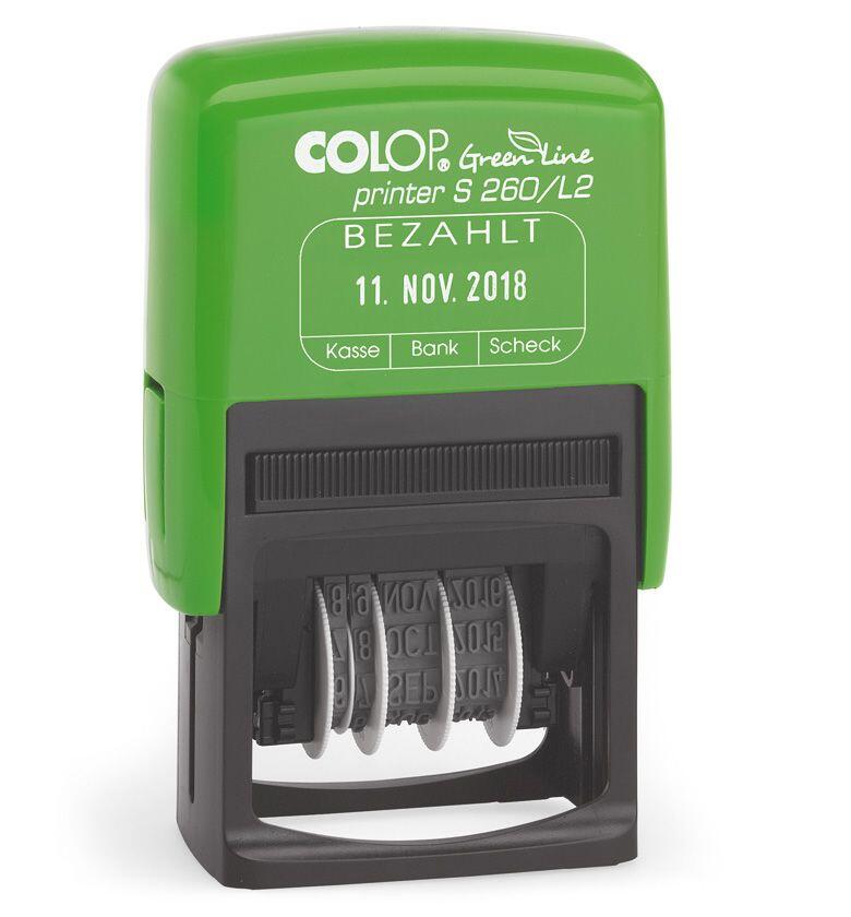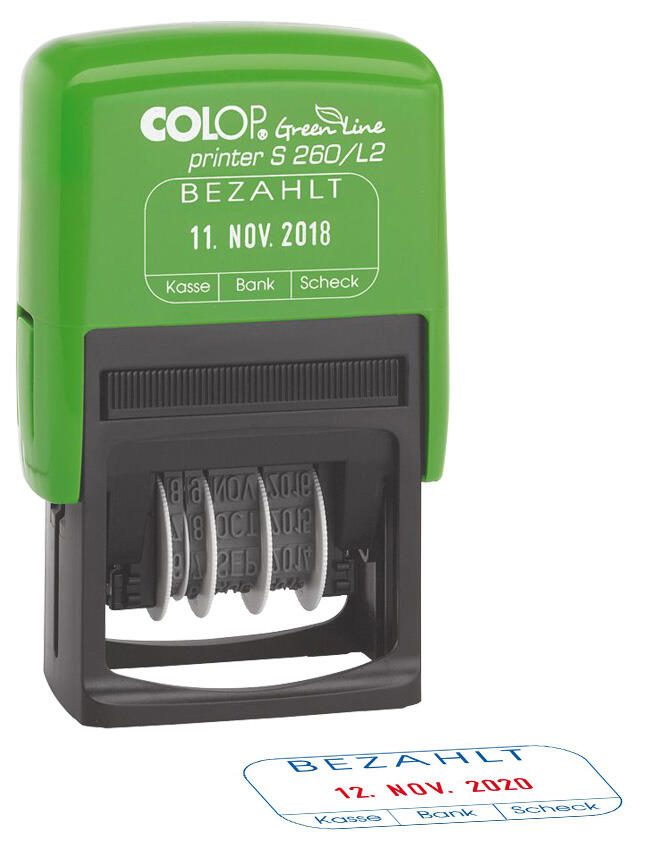 COLOP Datumstempel mit Text Stempel Printer 260/L2 Bezahlt grün