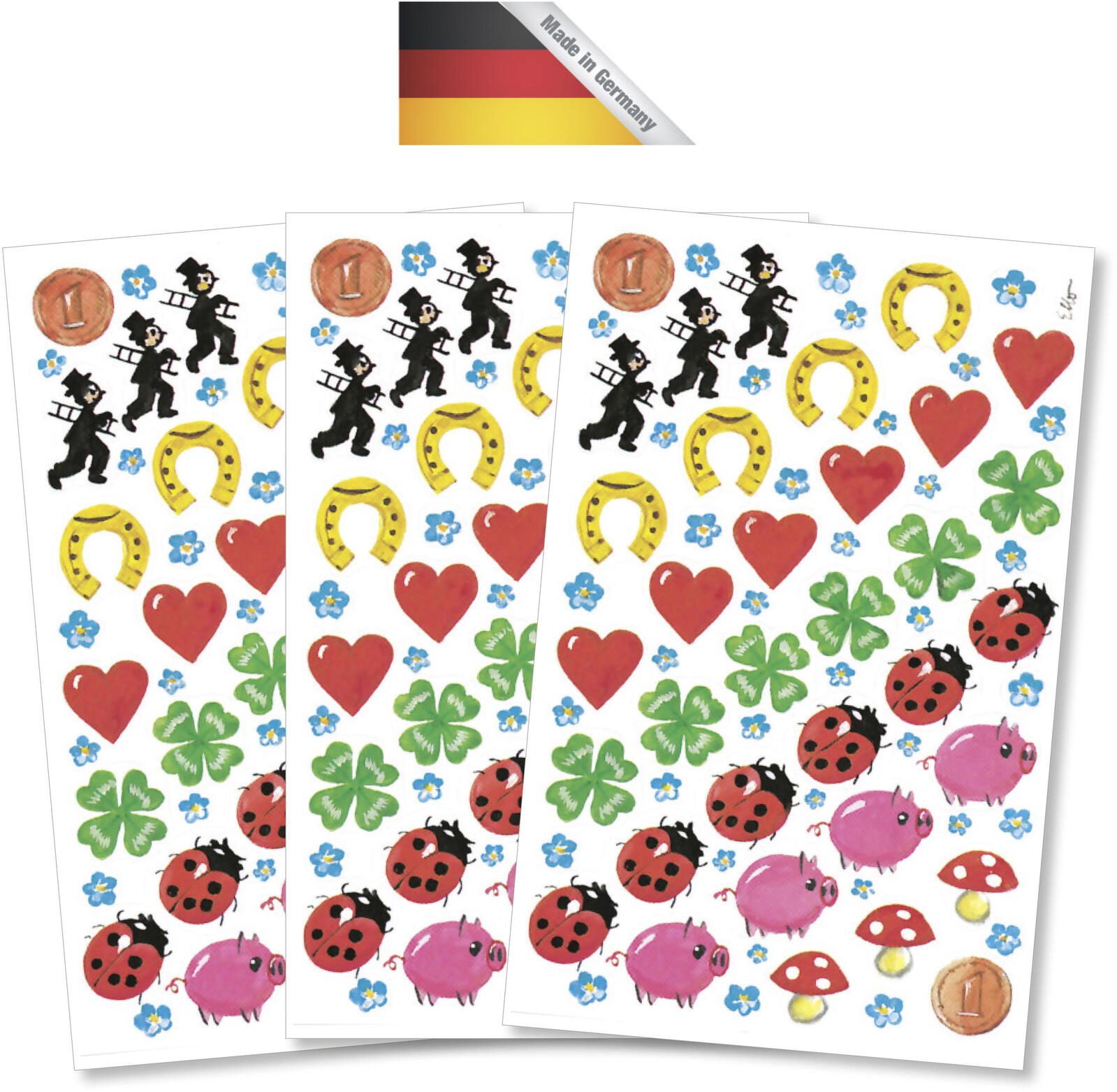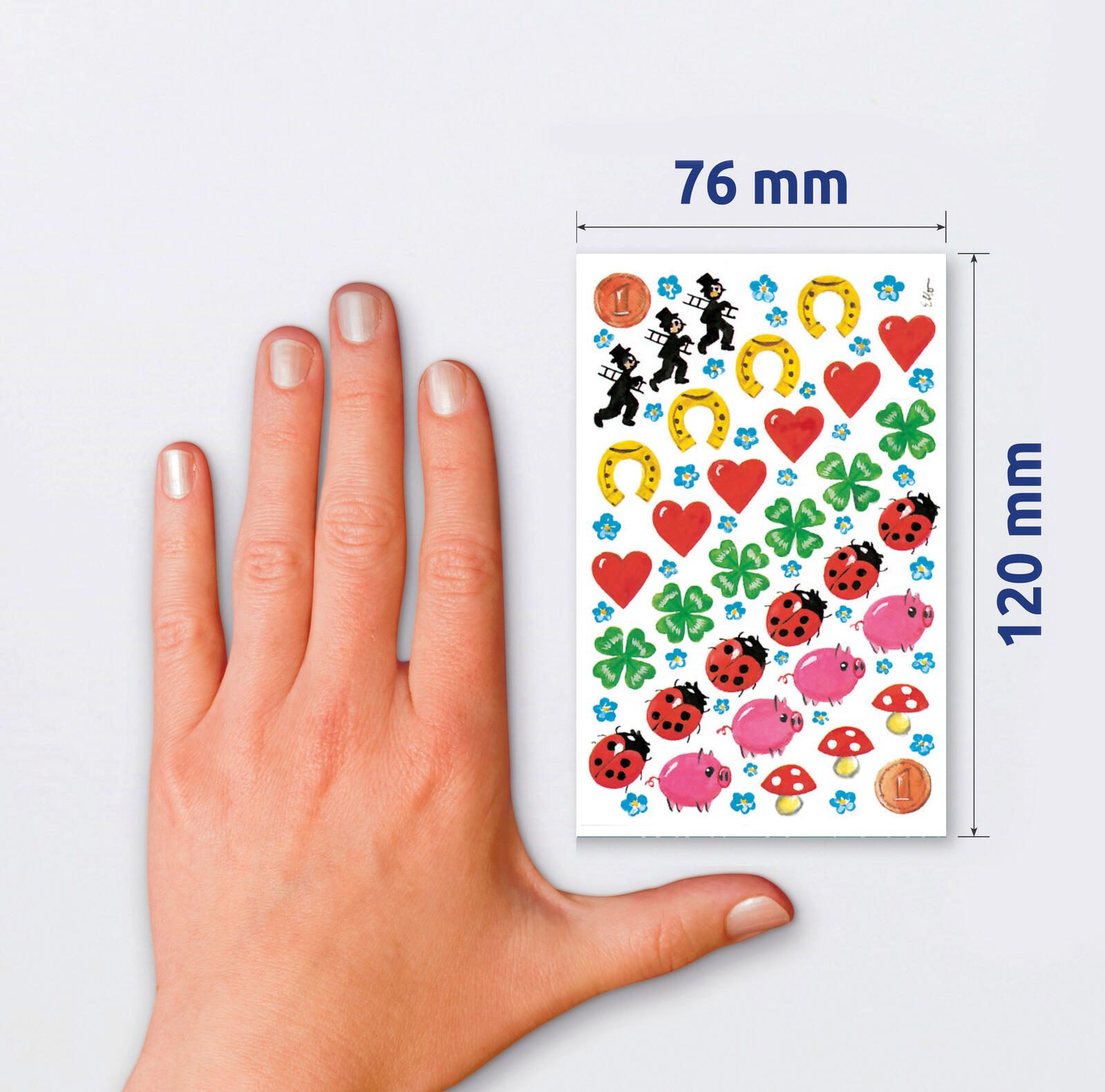 Das Motiv der Glücksbringer sorgt für positive Stimmung und eignet sich hervorragend für Geschenke, Einladungen oder einfach als kleine Überraschung im Alltag. Egal, ob Sie eine besondere Feier planen oder jemandem einfach nur eine Freude machen möchten, diese Aufkleber verleihen Ihren Ideen das gewisse Etwas. Die selbstklebende Rückseite ermöglicht eine einfache Handhabung, sodass Sie die Aufkleber mühelos anbringen können, ohne sich um Kleber oder zusätzliche Materialien kümmern zu müssen.