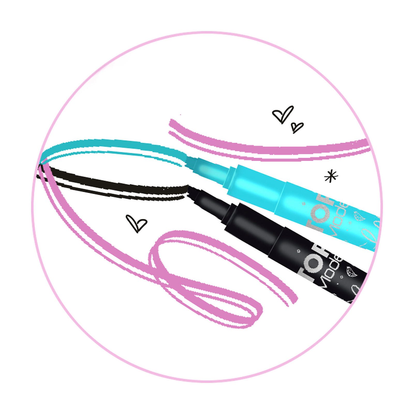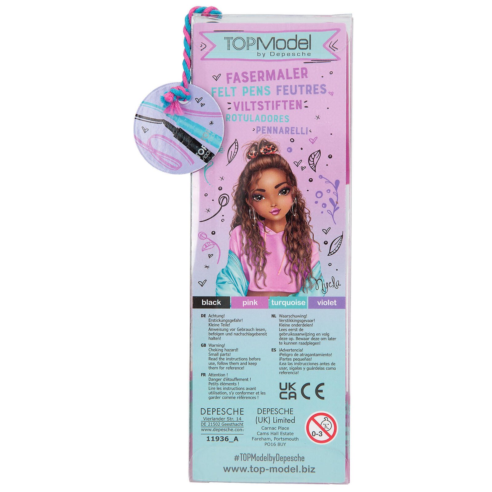 - Schreibfarbe: schwarz, pink, türkis und lila