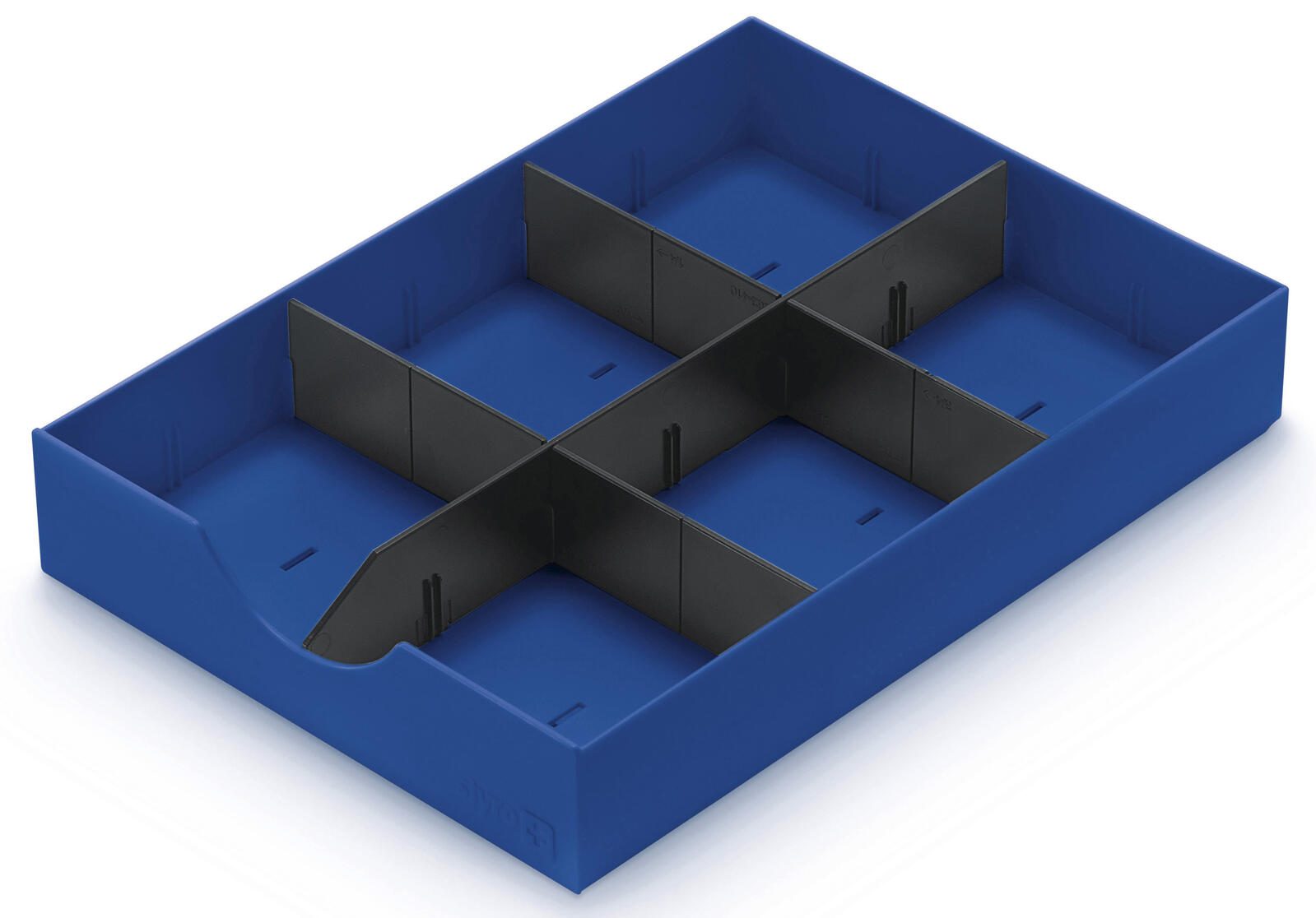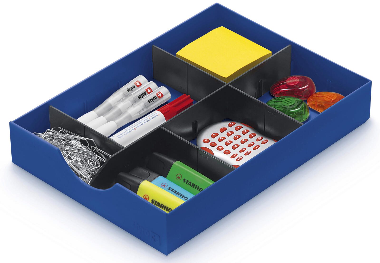 Mit dem Styro-Schubladeneinsatz wird das chaotische Durcheinander der Vergangenheit angehören. Behalte den Überblick über deine Utensilien und erleichtere dir den Zugriff auf das, was du brauchst. Mach Schluss mit dem Suchen und finde alles auf Anhieb an seinem Platz mit dem styro Schubladeneinsatz Polystyrol in Blau.