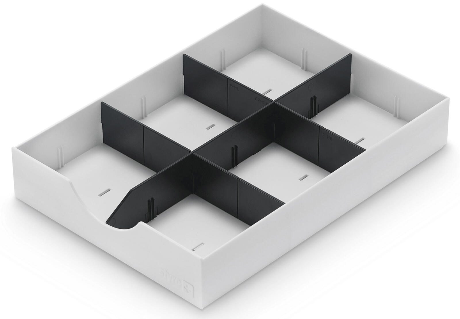 - Anzahl Fächer: 1 Längs- und 2 Querstreben für die individuelle Unterteilung