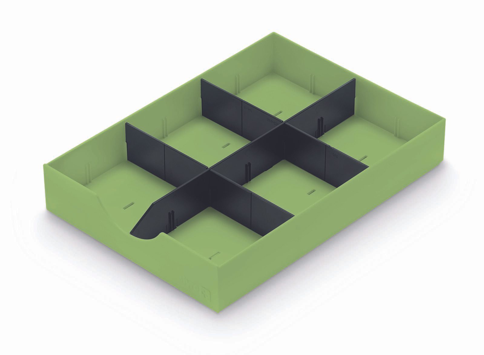 - Anzahl der Fächer: 1 Längs- und 2 Querstreben für die individuelle Unterteilung