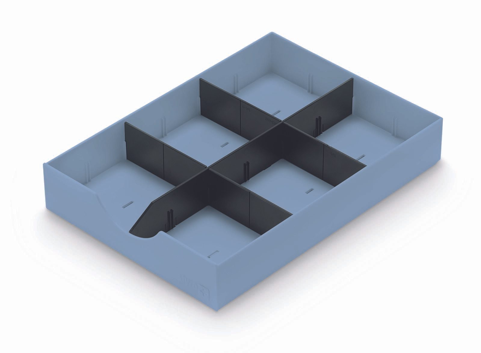 - Anzahl der Fächer: 1 Längs- und 2 Querstreben für die individuelle Unterteilung