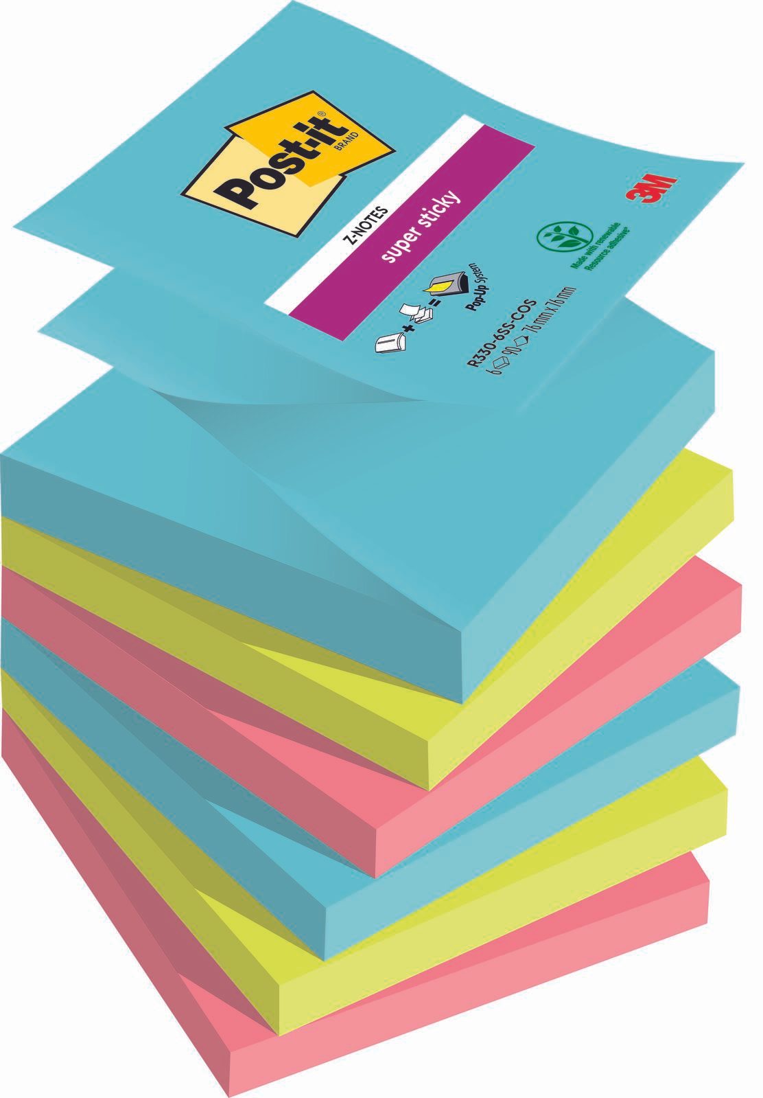 Die Post-it® Haftnotizen in der praktischen Größe von 7,6 x 7,6 cm sind der ideale Begleiter für deine täglichen Notizen und Erinnerungen. Diese farbsortierten Haftnotizen sind nicht nur funktional, sondern auch ein echter Hingucker in deinem Arbeitsumfeld. Mit lebhaften Farben wie türkis, neongrün, neonpink und mohnrot bringen sie Farbe in deine Notizen und helfen dir, wichtige Informationen auf einen Blick zu erfassen. Die Z-Faltung der Haftnotizen sorgt dafür, dass du sie einfach entnehmen und direkt verwenden kannst. Jede Packung enthält insgesamt 6 Blöcke mit jeweils 90 Blatt, sodass du ausreichend Material für deine Ideen und Aufgaben zur Verfügung hast. Diese Haftnotizen bestehen aus hochwertigem Papier und sind selbstklebend, was dir ermöglicht, sie mühelos an verschiedenen Oberflächen anzubringen und bei Bedarf wieder zu entfernen, ohne Rückstände zu hinterlassen. Dank ihrer kompakten Größe sind die Post-it® Haftnotizen perfekt für den Einsatz im Büro, in der Schule oder zu Hause. Sie eignen sich hervorragend für kurze Notizen, Erinnerungen oder um wichtige Informationen hervorzuheben. Ihre auffälligen Farben machen es dir leicht, deine Notizen zu organisieren und schnell zu finden, was du benötigst. Die Post-it® Haftnotizen sind nicht nur praktisch, sondern auch eine umweltfreundliche Wahl, da sie aus Papier hergestellt sind. Nutze die Vielseitigkeit dieser Haftnotizen, um deine Gedanken zu strukturieren und deine Kreativität auszuleben. Mit den Post-it® Haftnotizen 7,6 x 7,6 cm hast du immer die richtige Lösung zur Hand, um deine Ideen festzuhalten und zu organisieren.Technische Daten