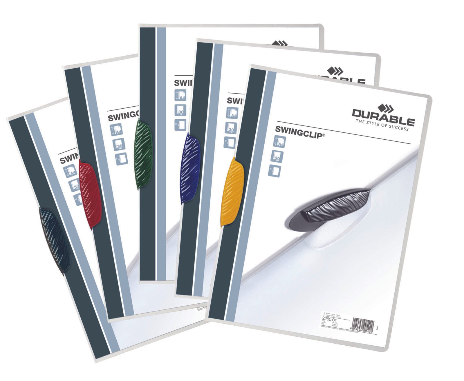 Der DURABLE Klemmhefter Swingclip in transparentem Design ist die ideale Lösung für die ordentliche Aufbewahrung und Präsentation von Dokumenten im DIN A4 Format. Mit einem Füllvermögen von bis zu 30 Blatt bietet dieser Klemmhefter ausreichend Platz für deine wichtigen Unterlagen, sei es im Büro, in der Schule oder zu Hause. Hergestellt aus hochwertigem Polypropylen (PP) ist der Klemmhefter nicht nur robust und langlebig, sondern auch leicht und flexibel. Die transparente Vorderseite ermöglicht es dir, den Inhalt auf einen Blick zu erkennen, während die farbsortierte Klemme in fünf verschiedenen Farben (schwarz, grün, dunkelblau, gelb und rot) einen zusätzlichen Farbtupfer bietet und die Organisation deiner Dokumente erleichtert. Die praktische Swingclip-Serie von DURABLE überzeugt durch ihre einfache Handhabung. Du kannst deine Unterlagen schnell und unkompliziert einlegen und bei Bedarf auch wieder entnehmen. Durch das durchsichtige Material hast du immer einen klaren Überblick über den Inhalt, was die Suche nach bestimmten Dokumenten erheblich vereinfacht. Mit einer Packung von 25 Stück bist du bestens ausgestattet, um deine Dokumente effizient zu verwalten. Der DURABLE Klemmhefter Swingclip ist nicht nur funktional, sondern auch ästhetisch ansprechend und passt perfekt in jedes Büro- oder Lernumfeld. Vertraue auf die Qualität von DURABLE und halte deine Unterlagen stilvoll und ordentlich zusammen.Technische Daten