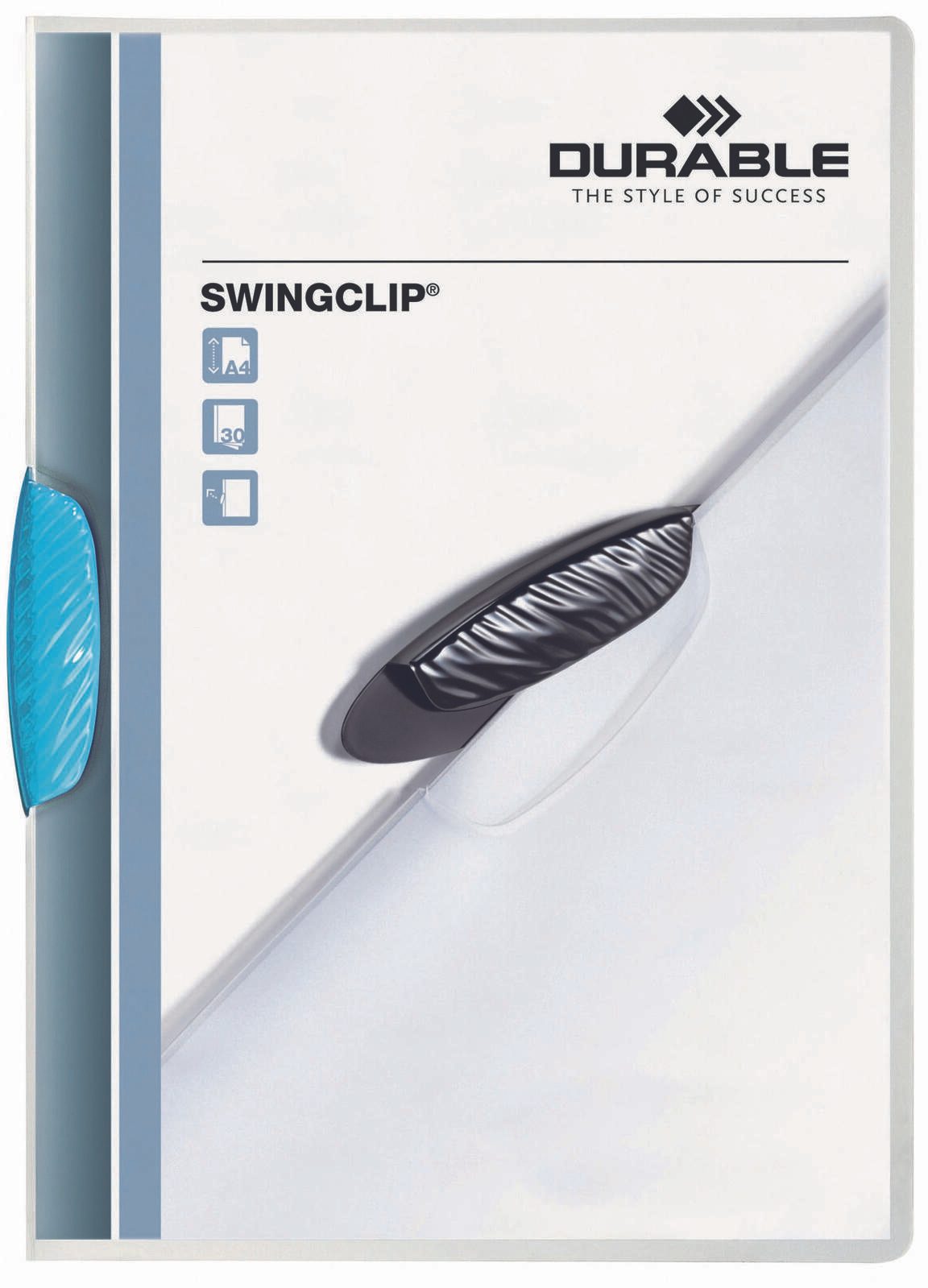Der DURABLE Klemmhefter Swingclip in der ansprechenden Farbe mittelblau ist die ideale Lösung für die ordentliche und professionelle Aufbewahrung deiner Dokumente im DIN A4 Format. Mit seinem modernen Design und der transparenten Vorderseite ermöglicht dieser Klemmhefter nicht nur einen schnellen Zugriff auf deine Unterlagen, sondern sorgt auch dafür, dass deine Präsentationen und Berichte stets gut aussehen. Hergestellt aus hochwertigem Polypropylen (PP), bietet der Swingclip eine robuste und langlebige Qualität, die den täglichen Anforderungen im Büro oder bei Präsentationen standhält. Der Klemmhefter hat ein Füllvermögen von bis zu 30 Blatt, was ihn perfekt für die Organisation von wichtigen Dokumenten, Schulunterlagen oder Projekten macht. Durch die Verwendung von Kunststoff für den Clip ist eine sichere und einfache Handhabung gewährleistet, sodass du deine Unterlagen schnell einfügen oder entnehmen kannst. Die Farbgebung in mittelblau verleiht dem Klemmhefter eine frische und ansprechende Optik, die in jedem Büro oder Arbeitsumfeld gut zur Geltung kommt. Der DURABLE Klemmhefter Swingclip ist nicht nur funktional, sondern auch ein stilvolles Accessoire, das Ordnung und Struktur in deinen Arbeitsalltag bringt. In einer praktischen Packung mit 25 Stück ist dieser Klemmhefter eine ausgezeichnete Wahl für alle, die Wert auf Qualität und eine ansprechende Präsentation ihrer Dokumente legen. Mit dem DURABLE Klemmhefter Swingclip bist du bestens ausgestattet, um deine Unterlagen sicher und stilvoll zu verwalten.Technische Daten