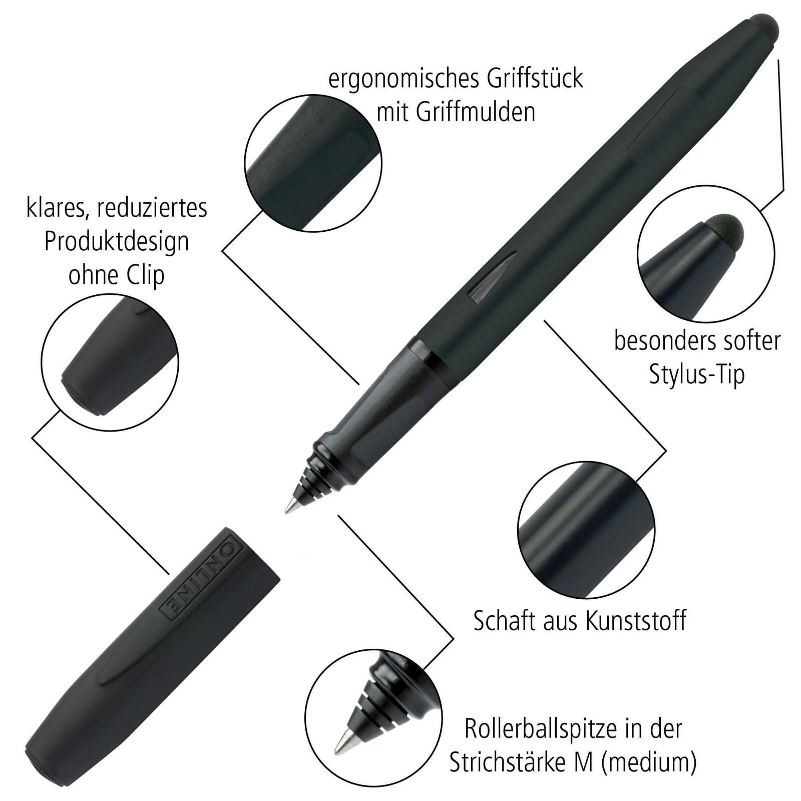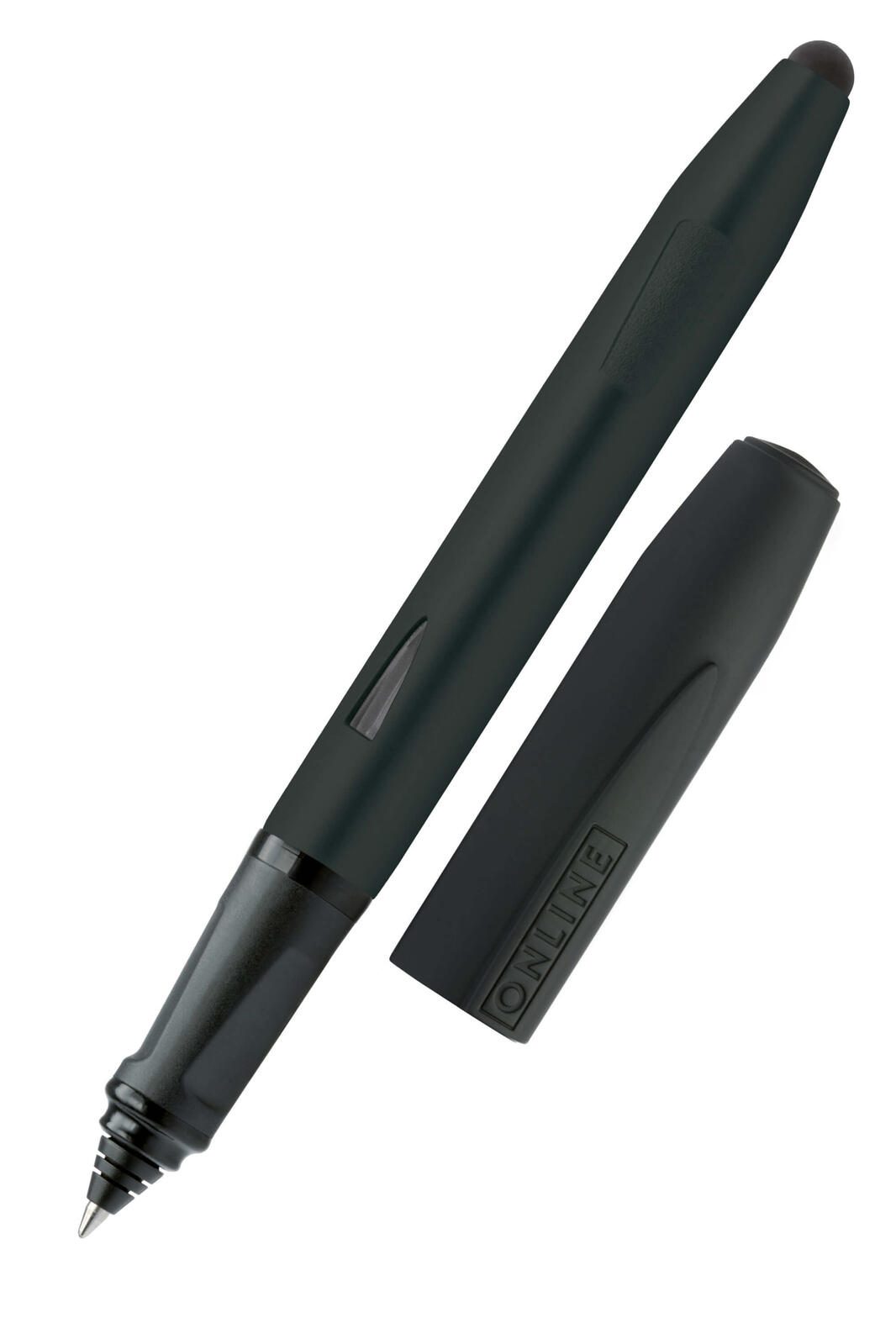 Der ONLINE® Tintenroller Switch Nero in Blau ist ein hochwertiger und praktischer Begleiter für alle Schreibbedürfnisse. Mit einer Stylus-Spitze versehen, bietet er ein komfortables Schreiberlebnis für Rechts- und Linkshänder gleichermaßen. Der ergonomisch gestaltete Griff sorgt für angenehme Handhabung, selbst bei längeren Schreibsessions.