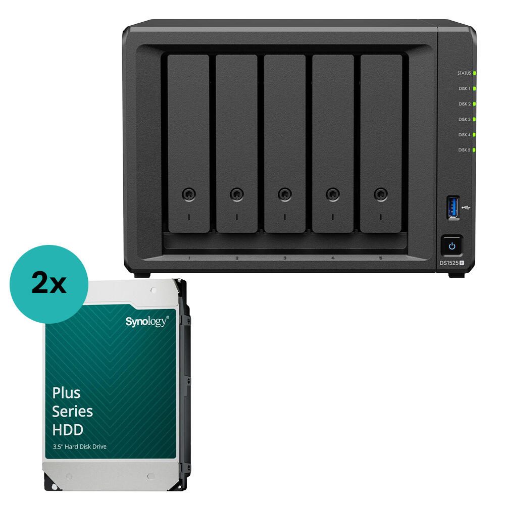 Synology DiskStation DS1525+ 5 Einschübe NAS-Server Leergehäuse (DS1525+) + 2x Synology Plus 3.5" SATA 6Gb/s Festplatte 16 TB