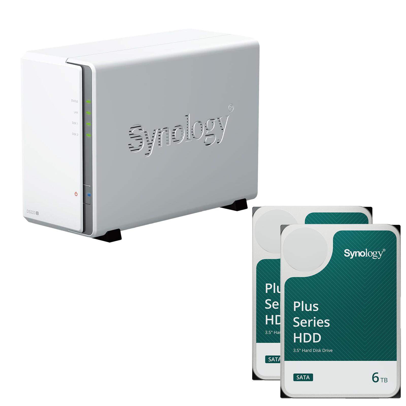 Synology DiskStation DS223J 2 Einschübe NAS-Server Leergehäuse + 2x Synology Plus 3.5" SATA HDD Festplatte 6 TB (12TB)