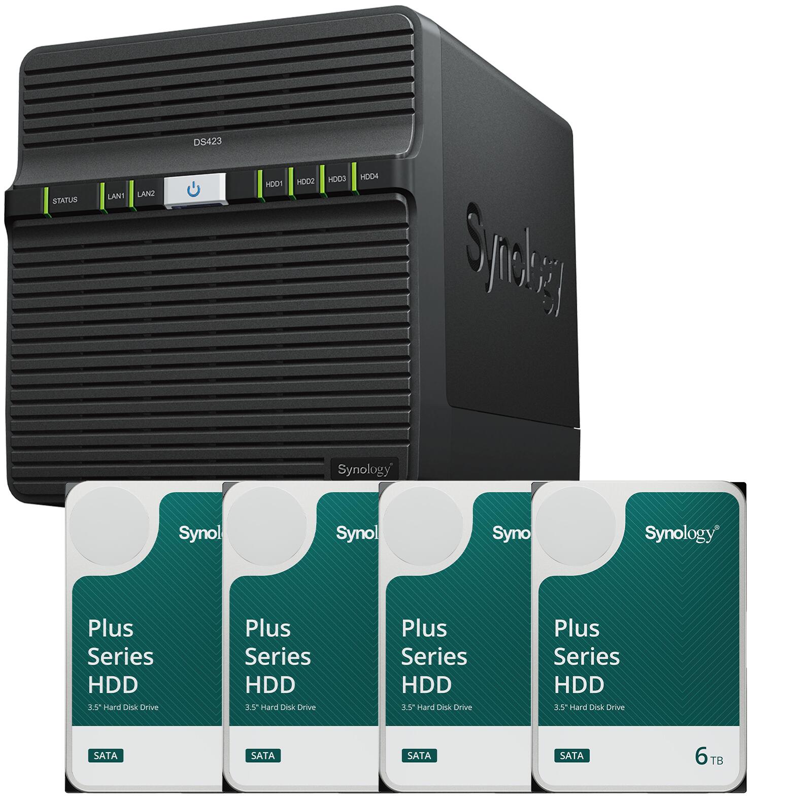 Synology DiskStation DS423 4 Einschübe NAS-Server Leergehäuse + 4x Synology Plus 3.5" SATA HDD Festplatte 6TB (4x 6TB)
