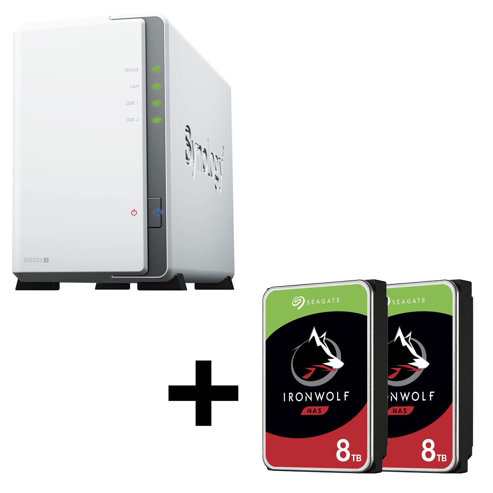 Synology DiskStation DS223J 2 Einschübe NAS-Server Leergehäue + 16TB (2x8TB) Seagate Ironwolf SATA 3.5 HDD Festplatten