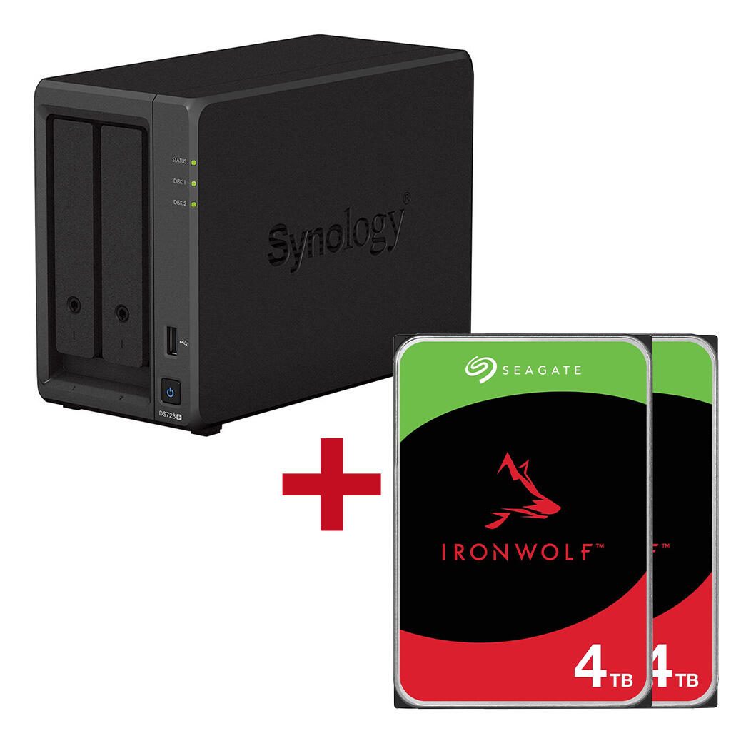 Synology DiskStation DS723+ 2 Einschübe NAS-Server Leergehäuse + 2x Seagate Ironwolf SATA 3.5" HDD 4TB Festplatte