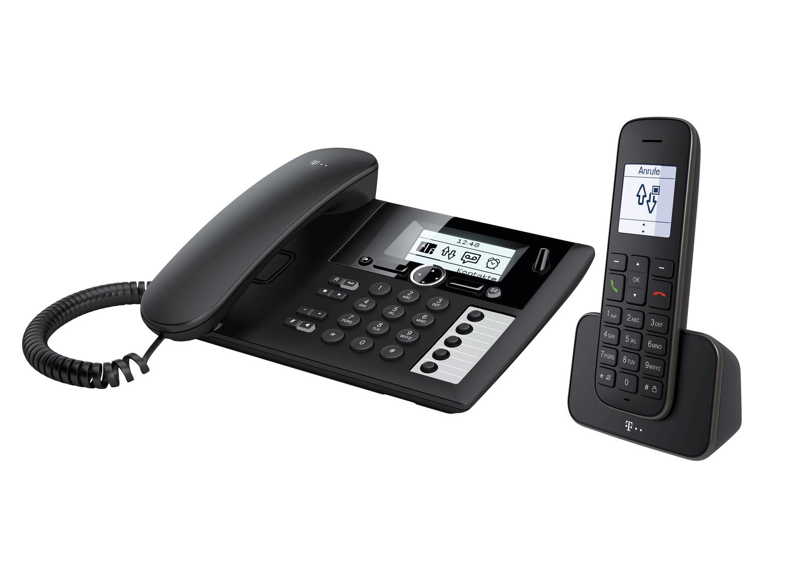 - Tischtelefon und Mobilteil mit Ladeschale