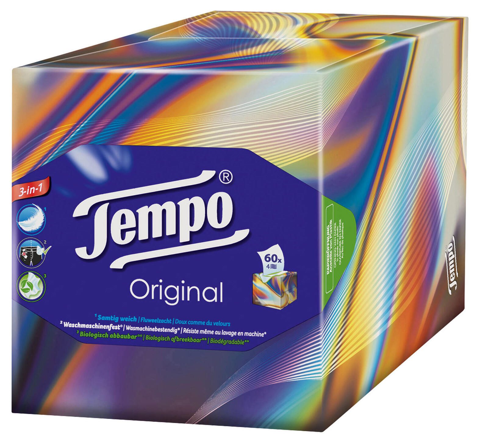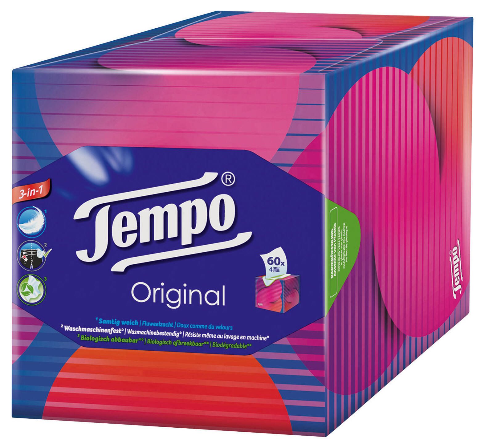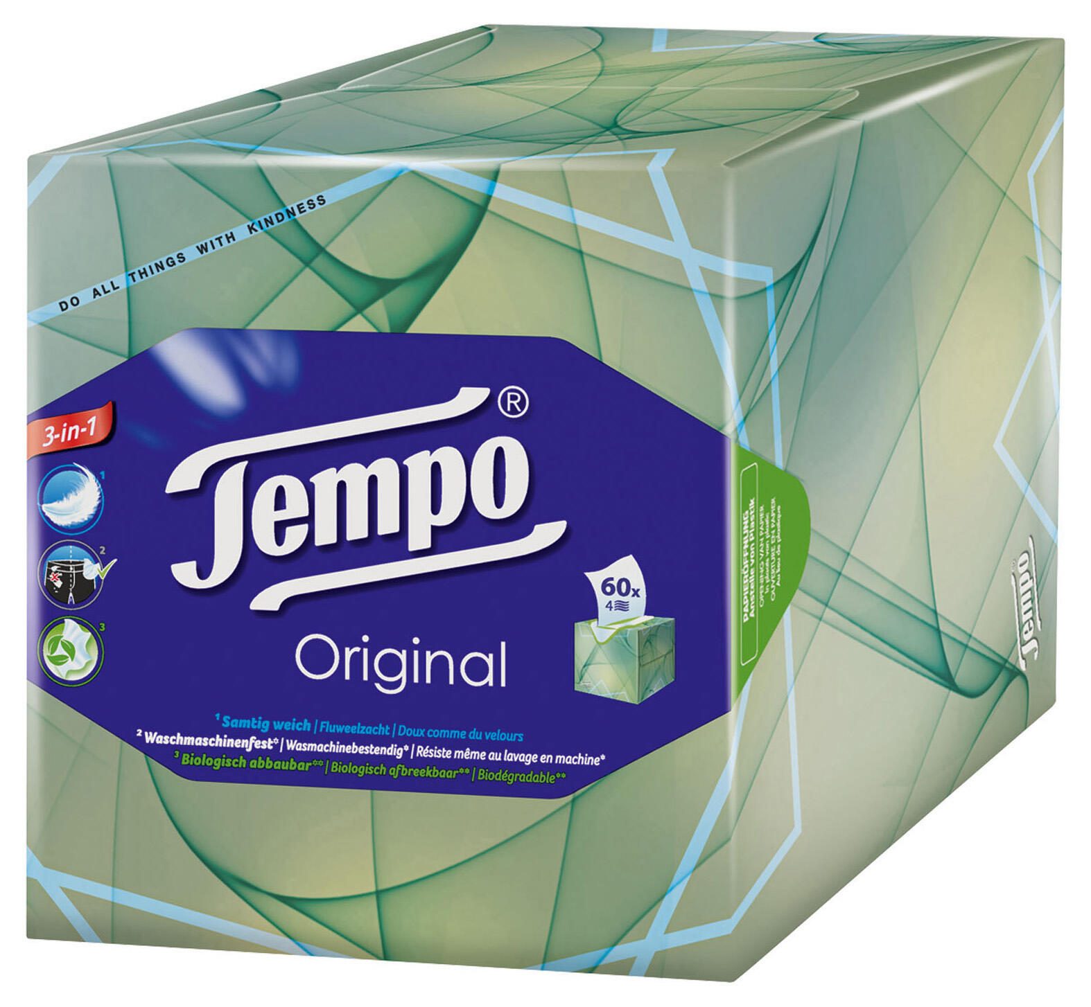 Die Tempo Taschentücherbox 4-lagig ist die ideale Lösung für alle, die Wert auf Qualität und Komfort legen. Mit einer ansprechenden weißen Farbe fügt sich die Box harmonisch in jedes Zuhause ein und ist stets griffbereit, wenn du sie benötigst. Die 4-lagige Struktur der Taschentücher sorgt für eine außergewöhnliche Saugfähigkeit und Robustheit, sodass du dich auf ihre Leistung verlassen kannst, egal ob bei Allergien, Erkältungen oder einfach nur für den täglichen Gebrauch. Jede Box enthält 60 hochwertige Taschentücher aus Zellstoff, die nicht nur weich zur Haut sind, sondern auch eine hervorragende Festigkeit bieten. Diese Kombination macht die Tempo Taschentücher ideal für die ganze Familie. Der Verzicht auf Duftstoffe sorgt dafür, dass die Taschentücher auch für empfindliche Nasen geeignet sind und keine zusätzlichen Reizungen verursachen. Die Tempo Taschentücherbox ist nicht nur praktisch, sondern auch äußerst funktional. Du kannst sie problemlos in der Wohnung, im Auto oder im Büro aufbewahren. Die handliche Box ermöglicht ein einfaches Entnehmen der Tücher, sodass du immer schnell zur Stelle bist, wenn du ein Taschentuch benötigst. Vertraue auf die Qualität von Tempo und erlebe den Unterschied, den 4-lagige Taschentücher in deinem Alltag machen können. Mit der Tempo Taschentücherbox bist du bestens ausgestattet, um jede Situation zu meistern.Technische Daten