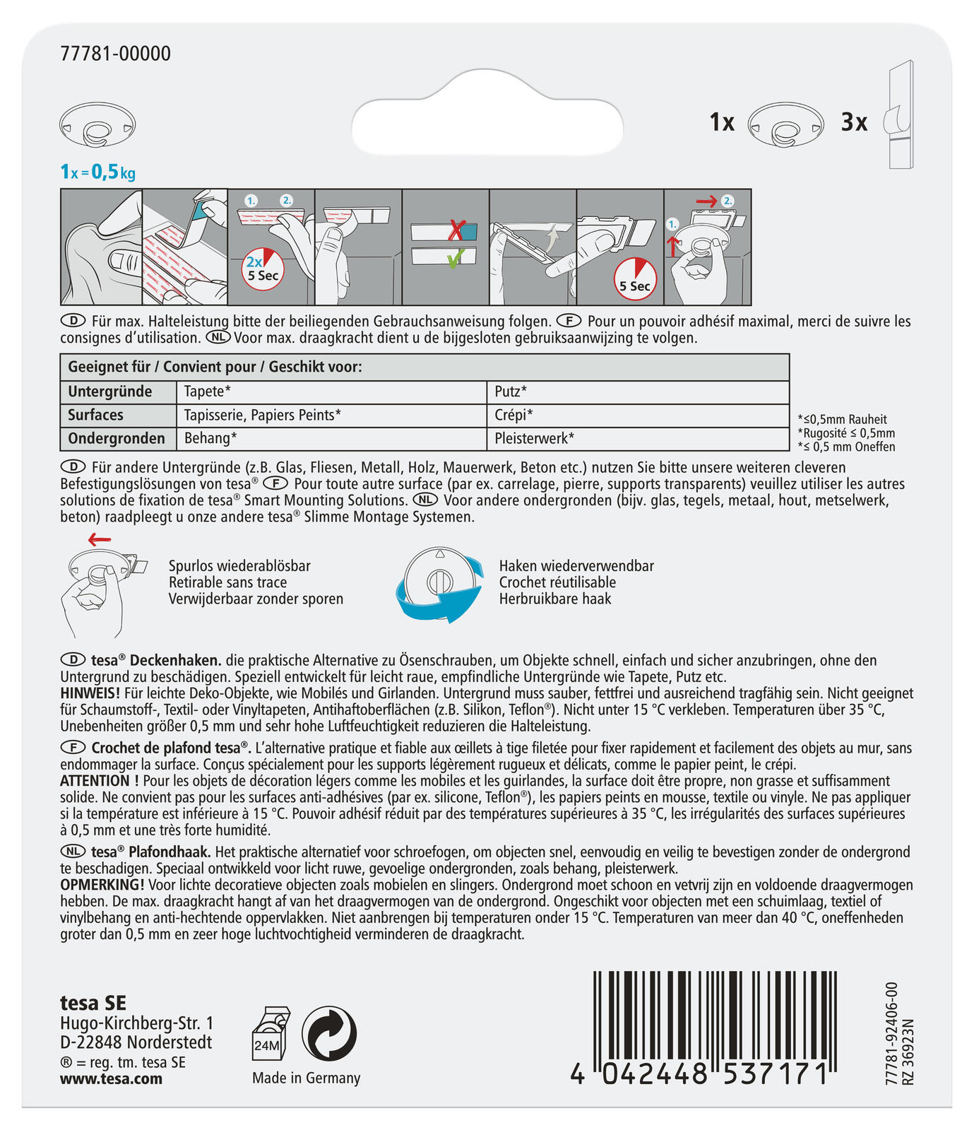 Egal ob im Wohnzimmer, Schlafzimmer oder Büro – mit dem tesa Klebehaken hast du die Möglichkeit, deine Räume individuell zu gestalten, ohne dabei Kompromisse bei der Funktionalität eingehen zu müssen. Verabschiede dich von lästigem Bohren und erlebe die Flexibilität und Einfachheit, die dieser Klebehaken bietet. Hol dir jetzt den tesa Klebehaken 6 cm x 6 cm in Weiß und bring Ordnung und Stil in deine vier Wände.