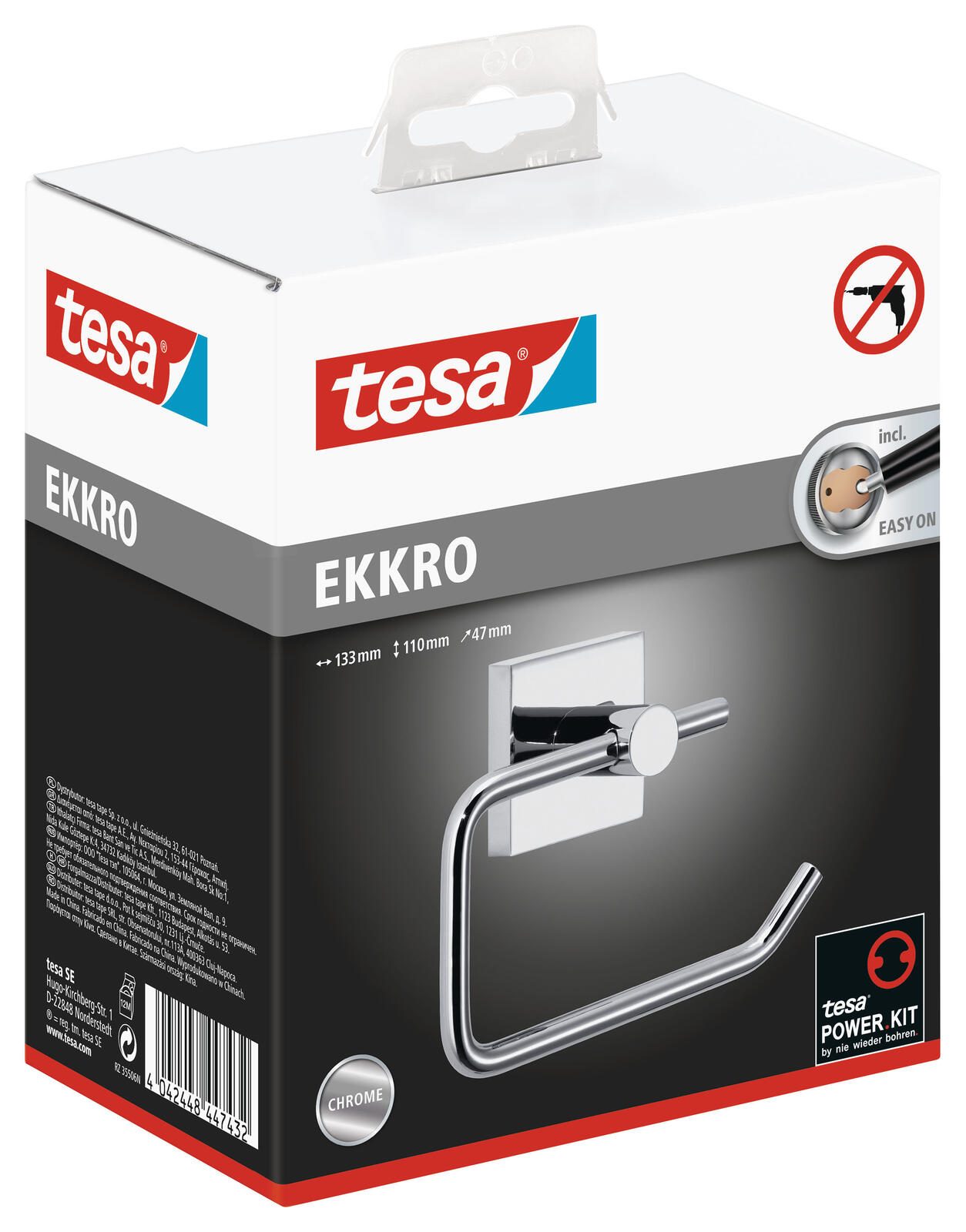 Der tesa EKKRO Toilettenpapierhalter in elegantem Chrom ist die perfekte Ergänzung für jedes Badezimmer. Mit seinem modernen und zeitlosen Design fügt er sich harmonisch in verschiedene Einrichtungsstile ein und sorgt für eine ansprechende Optik. Hergestellt aus hochwertigem verchromtem Metall, bietet dieser Halter nicht nur eine ansprechende Ästhetik, sondern auch eine hohe Langlebigkeit und Widerstandsfähigkeit gegen Korrosion. Die universelle Eignung für diverse Oberflächen wie Fliesen, Marmor, Glas, Metall, Stein, Zement, Holz und Plastik macht die Installation des tesa EKKRO Toilettenpapierhalters zu einem unkomplizierten Unterfangen. Egal, ob du ein modernes Bad oder ein klassisch eingerichtetes WC hast, dieser Halter wird deine Ansprüche an Funktionalität und Design mühelos erfüllen. Mit kompakten Maßen von 133 mm in der Breite, 47 mm in der Tiefe und 110 mm in der Höhe nimmt der Halter nur wenig Platz in Anspruch, während er dennoch eine optimale Funktionalität bietet. Die einfache Handhabung ermöglicht es dir, die Toilettenpapierrolle jederzeit schnell und unkompliziert zu wechseln. Die Serie EKKRO von tesa steht nicht nur für hochwertige Materialien, sondern auch für durchdachte Lösungen, die den Alltag erleichtern. Der Toilettenpapierhalter ist nicht nur praktisch, sondern auch ein stilvolles Accessoire, das deinem Badezimmer einen Hauch von Eleganz verleiht. Vertraue auf die Qualität von tesa und genieße den Komfort eines funktionalen und ansprechenden Toilettenpapierhalters.Technische Daten