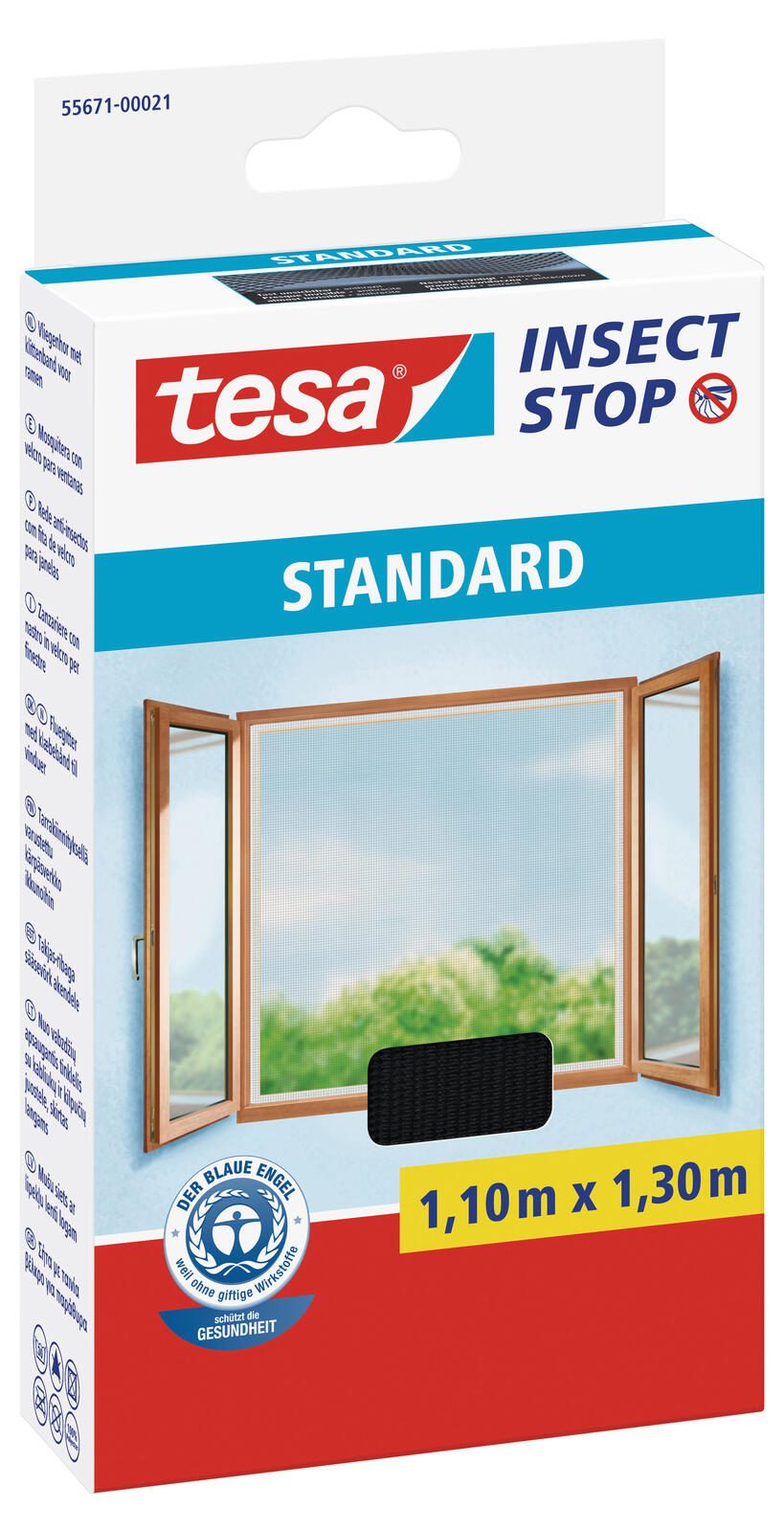 Die Serie Insect Stop STANDARD von tesa bietet eine hochwertige Qualität und Langlebigkeit. Hergestellt aus Kunststoff, überzeugt das Fliegengitter durch seine Robustheit und Langlebigkeit. Es ist speziell für die Verwendung an Fenstern entwickelt worden, um effektiv Insekten fernzuhalten und gleichzeitig frische Luft hereinzulassen.