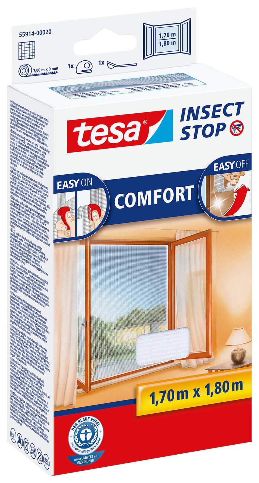 Die selbstklebende Halterung des Klettbandes sorgt für eine einfache Montage an Fenstern ohne Bohren oder komplizierte Installationen. Das Fliegengitter, aus hochwertigem Polyester gefertigt, trägt den Anspruch an Qualität und Langlebigkeit, den man von der Marke tesa gewohnt ist. Unter der Serienbezeichnung Insect Stop COMFORT und der Bezeichnung des Herstellers "Tesa Fliegengitter 1,3:1,3m wß" überzeugt dieses Produkt durch seine einfache Handhabung und die effektive Insektenabwehr, ohne dabei den Komfort des Lüftens einzuschränken.