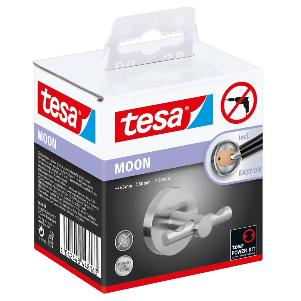 Der tesa Handtuchhaken MOON in elegantem Silber vereint modernes Design mit praktischer Funktionalität. Gefertigt aus hochwertigem Metall, besticht dieser Handtuchhalter durch seine robuste und langlebige Verarbeitung. Mit den Maßen 6,5 x 3,5 x 5,0 cm ist er kompakt und dennoch stabil genug, um Handtücher oder Bademäntel sicher aufzunehmen.