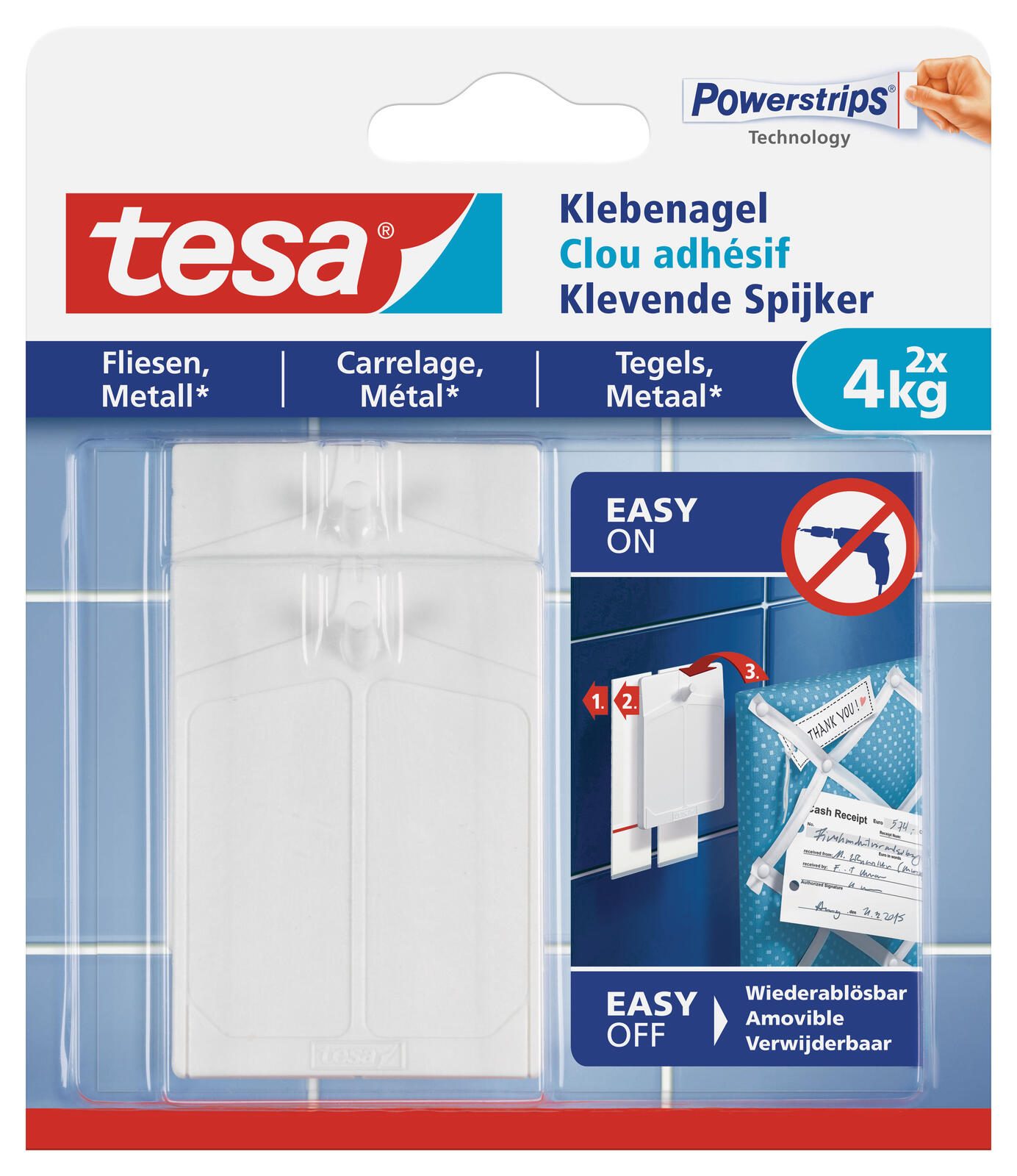 Die tesa Klebenägel in der praktischen Größe von 4.6 cm x 6.4 cm bieten eine innovative Lösung für die Befestigung von Objekten in deinem Zuhause. Diese weißen Klebenägel sind nicht nur ästhetisch ansprechend, sondern auch äußerst funktional. Hergestellt aus hochwertigem Kunststoff, garantieren sie eine hohe Strapazierfähigkeit und Langlebigkeit. Mit einer maximalen Belastbarkeit von bis zu 4 kg eignen sich die tesa Klebenägel ideal für die sichere Anbringung von verschiedenen Gegenständen an glatten und festen Oberflächen. Egal ob Fliesen, Glas, Holz, Kacheln, Metall oder Kunststoff – die Klebenägel haften zuverlässig und sorgen für eine stabile Verbindung. Dies macht sie zur perfekten Wahl für den Innenbereich, wo du eine saubere und ordentliche Optik wünschst. Ein weiterer Vorteil der tesa Klebenägel ist ihre Ablösbarkeit, die es dir ermöglicht, die befestigten Objekte jederzeit ohne Rückstände zu entfernen. Dies ist besonders nützlich, wenn du deine Einrichtung regelmäßig ändern möchtest oder wenn du in einer Mietwohnung lebst und keine dauerhaften Schäden an den Wänden hinterlassen möchtest. Die Packung enthält zwei Stück, sodass du gleich mehrere Anwendungen in einem Schritt durchführen kannst. Mit diesen Klebenägeln von tesa wird das Anbringen von Dekorationen und anderen Objekten zum Kinderspiel. Sie bieten eine einfache und effektive Lösung, um deinem Raum eine persönliche Note zu verleihen, ohne dabei aufwändige Werkzeuge oder Bohren zu benötigen. Die tesa Klebenägel sind die ideale Wahl für alle, die Wert auf Qualität und Funktionalität legen.Technische Daten