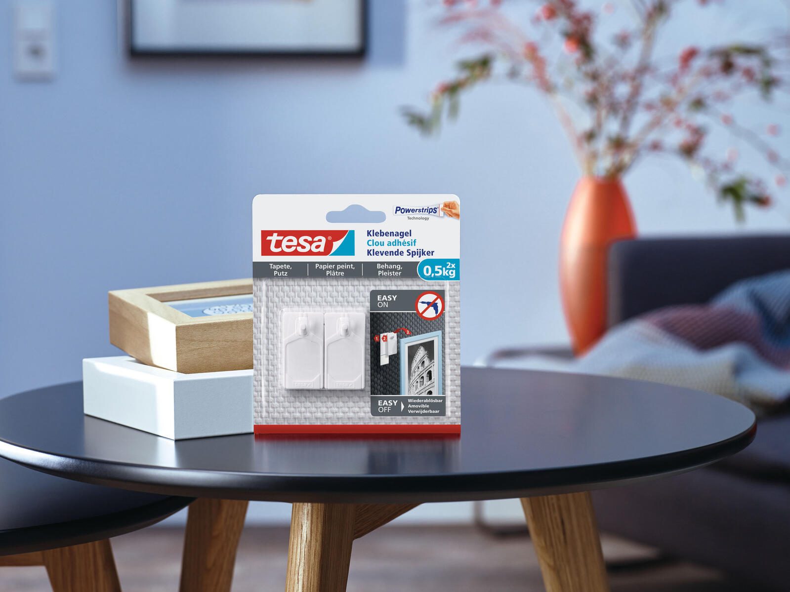 Die tesa Powerstripes Klebenägel sind die ideale Lösung für das Aufhängen von Objekten auf strukturierten und empfindlichen Untergründen. Mit einer kompakten Größe von 2.4 cm x 4.5 cm bieten diese Klebenägel eine zuverlässige und unkomplizierte Möglichkeit, Dekorationen, Bilder oder andere Gegenstände sicher zu befestigen, ohne dabei die Oberfläche zu beschädigen. Die weißen Klebenägel bestehen aus hochwertigem Kunststoff, der nicht nur langlebig ist, sondern auch eine ästhetische Ergänzung für jede Raumgestaltung darstellt. Sie sind speziell für den Innenbereich konzipiert und haften optimal auf Putz und Tapete, was sie besonders vielseitig einsetzbar macht. Dank ihrer ablösbaren Eigenschaft kannst du die Klebenägel jederzeit problemlos entfernen, ohne Rückstände zu hinterlassen oder die Wand zu beschädigen. Mit einer maximalen Belastbarkeit von 0 kg sind die tesa Powerstripes Klebenägel perfekt geeignet für leichte Objekte, die eine stilvolle Präsentation erfordern. Jede Packung enthält zwei Klebenägel, was dir die Möglichkeit gibt, mehrere Objekte gleichzeitig aufzuhängen oder einfach einen Ersatz zu haben, falls du deine Einrichtung umgestalten möchtest. Die tesa Powerstripes Klebenägel sind nicht nur funktional, sondern auch eine einfache und elegante Lösung für dein Zuhause. Ob im Wohnzimmer, Schlafzimmer oder in anderen Innenräumen, sie bieten eine praktische Möglichkeit, deinen persönlichen Stil zum Ausdruck zu bringen, ohne Kompromisse bei der Wandgestaltung einzugehen.Technische Daten