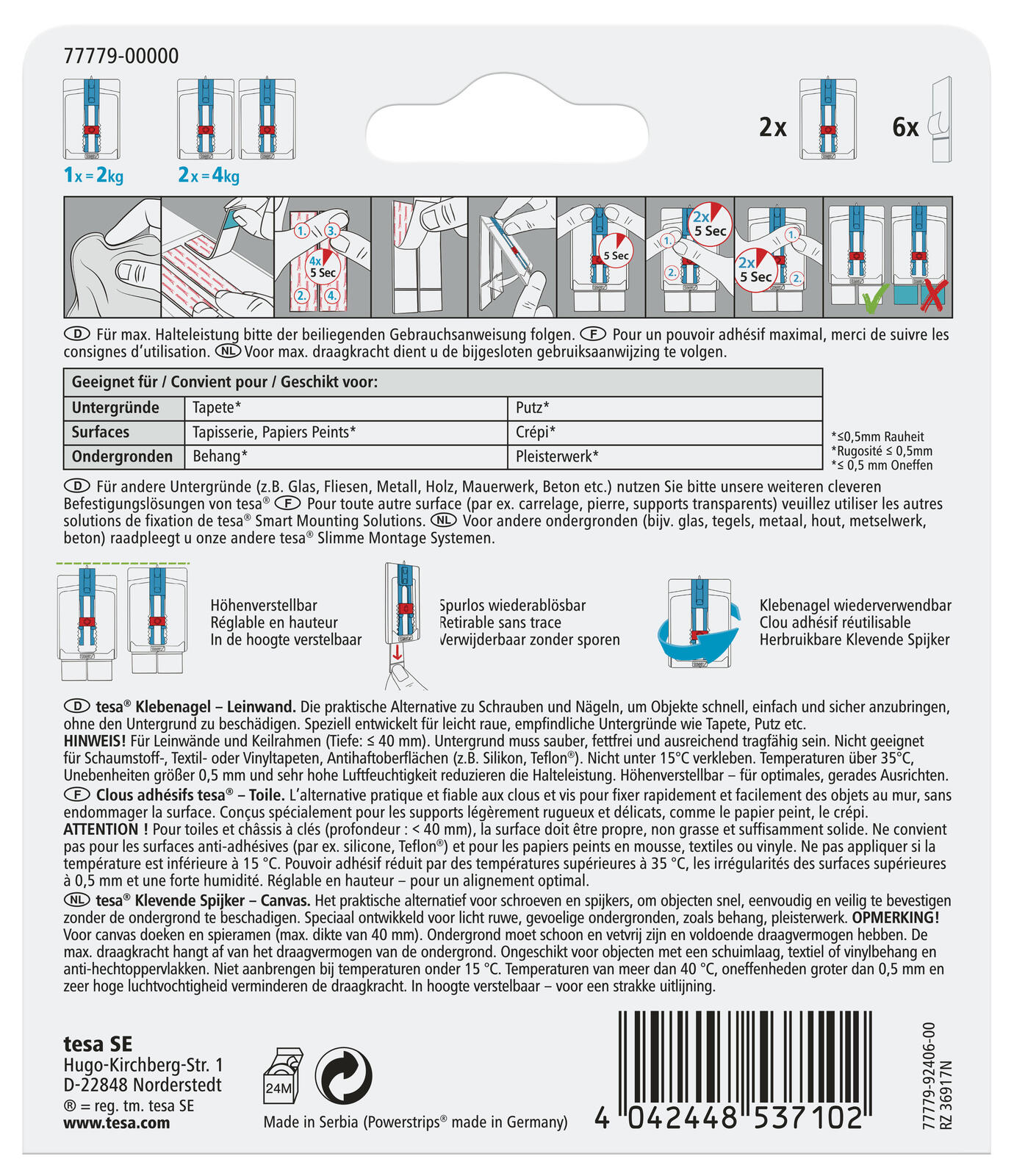 Mit einer maximalen Belastbarkeit von bis zu 2 kg sind die tesa Klebenägel ideal für die sichere Befestigung von leichtgewichtigen Dekorationen, Bildern oder anderen Gegenständen, die du gerne präsentieren möchtest. Die innovative ablösbare Funktion ermöglicht es dir, die Klebenägel ohne Rückstände zu entfernen, sodass du jederzeit deine Raumgestaltung anpassen kannst, ohne die Wände zu beschädigen.