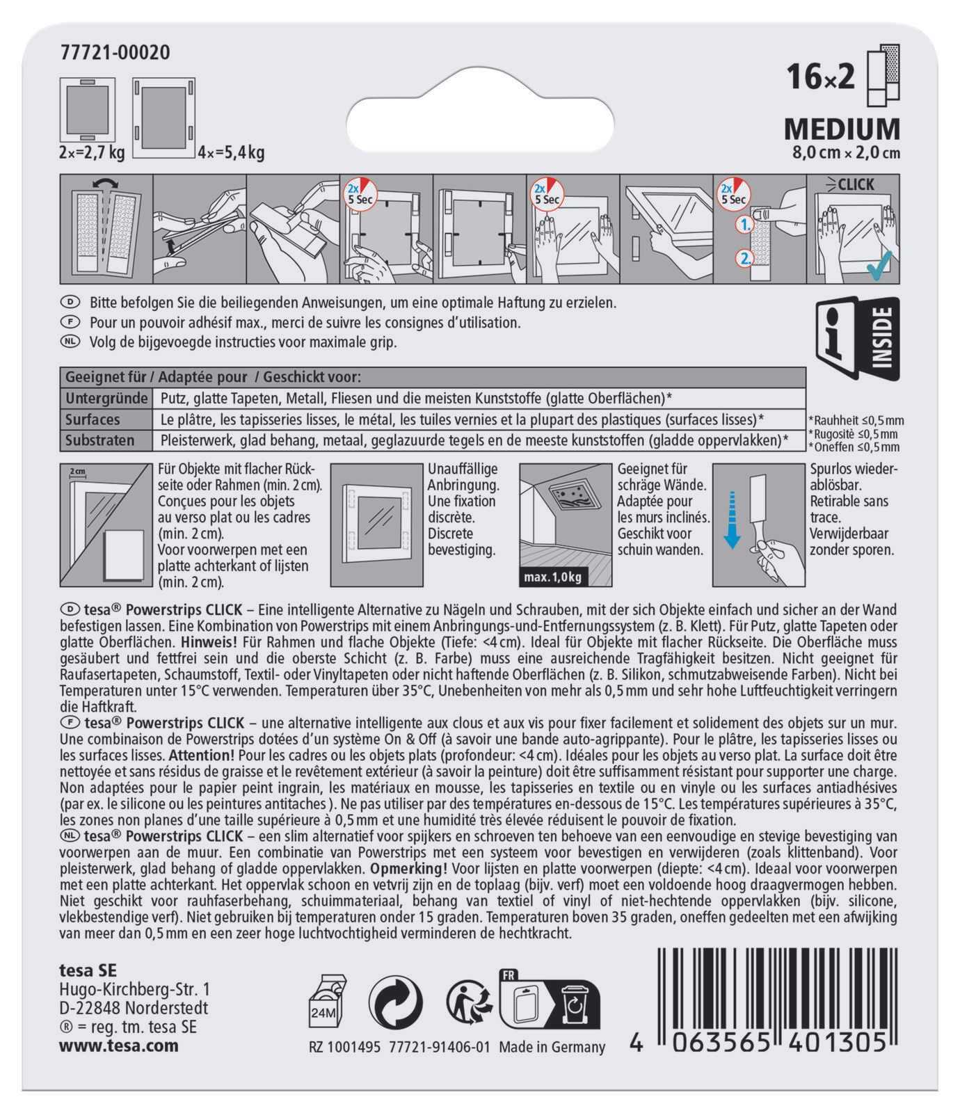 tesa Klettstreifen Powerstrips MEDIUM Click weiß