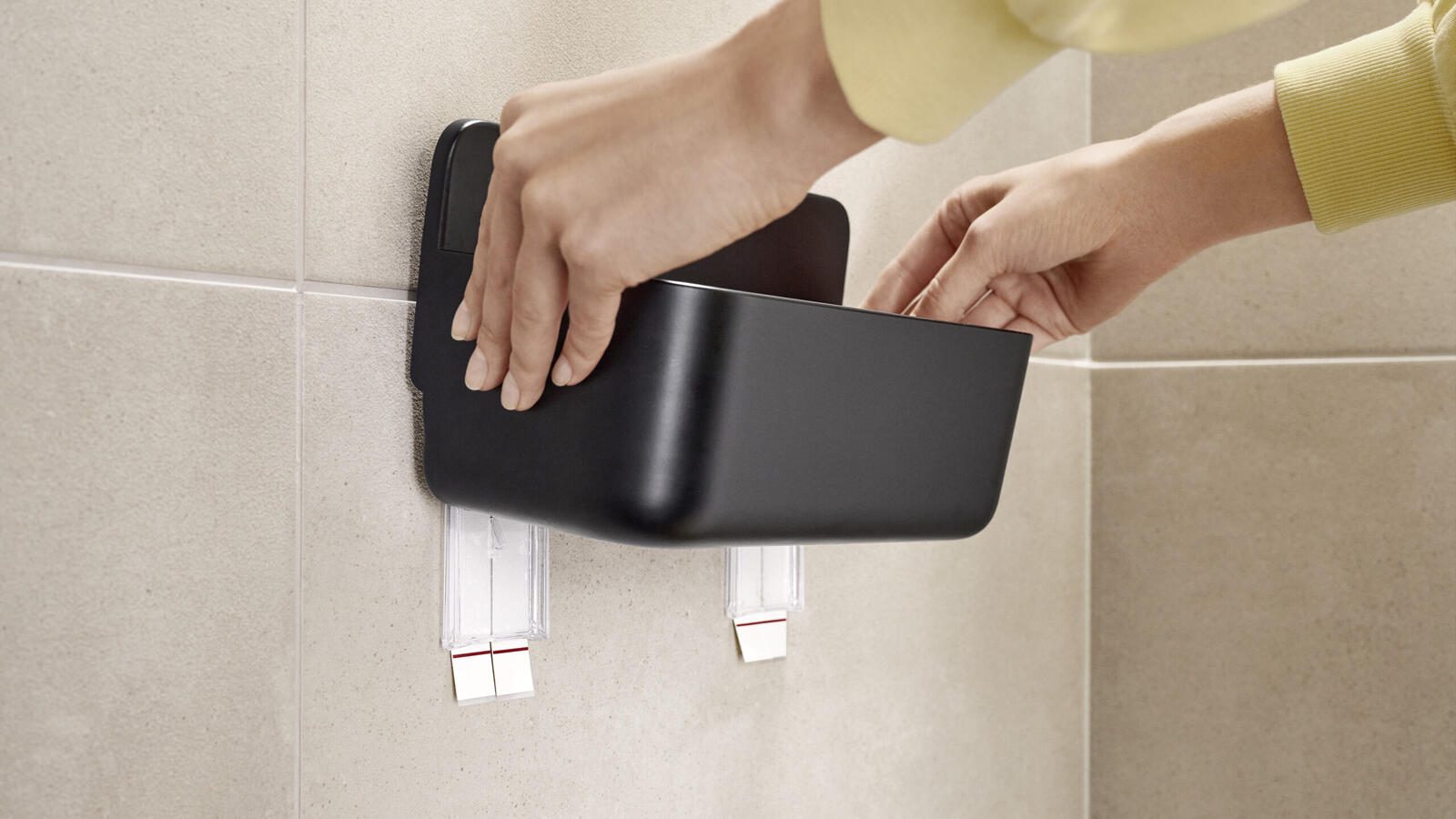 Der tesa LAVAA S Duschkorb aus Kunststoff bietet eine praktische Aufbewahrungslösung für das Badezimmer. Er überzeugt durch seine einfache und saubere Montage ganz ohne Bohren, wodurch keine Schäden an den Wänden entstehen. Der Duschkorb ist in einem schlichten Schwarz gehalten und passt sich unauffällig verschiedenen Einrichtungsstilen an.
