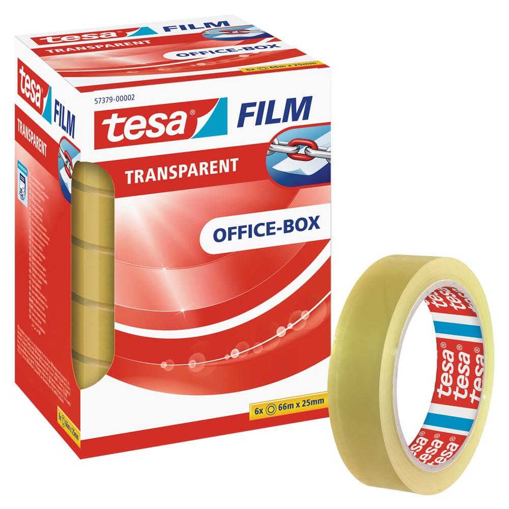 Tesafilm Büro-Klebeband - 25 mm x 66 m - transparent (Packung mit 6)