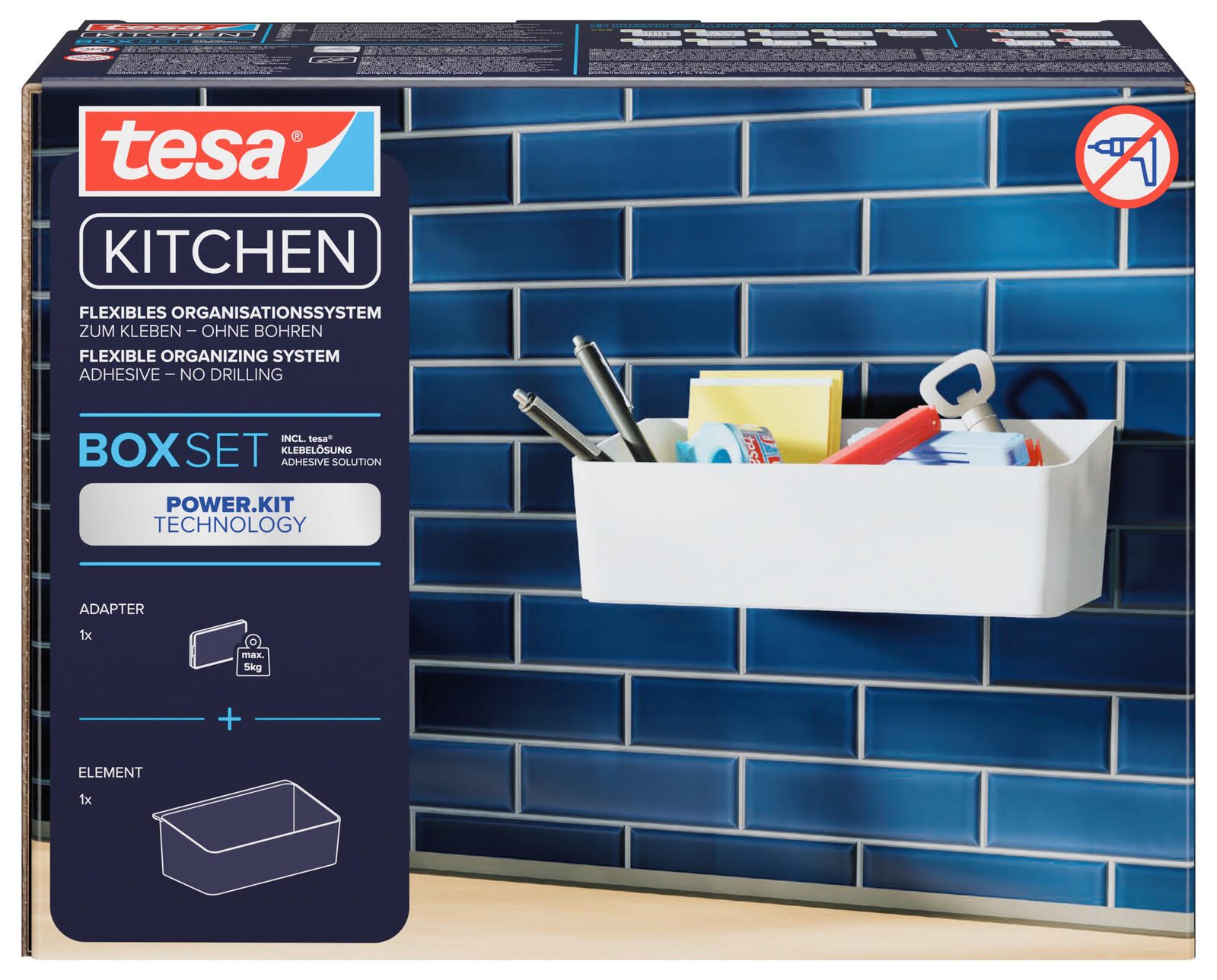 Im Lieferumfang enthalten sind neben dem Einzeladapter und der Halterung auch eine Box, die Anleitung, die Rändelmutter sowie das tesa® Klebeapplikator-Set, die zusammen eine unkomplizierte Installation garantieren. Dieses durchdachte Komplettpaket macht den Küchenutensilienhalter zu einer praktischen Lösung für mehr Ordnung und Funktionalität in Ihrer Küche.